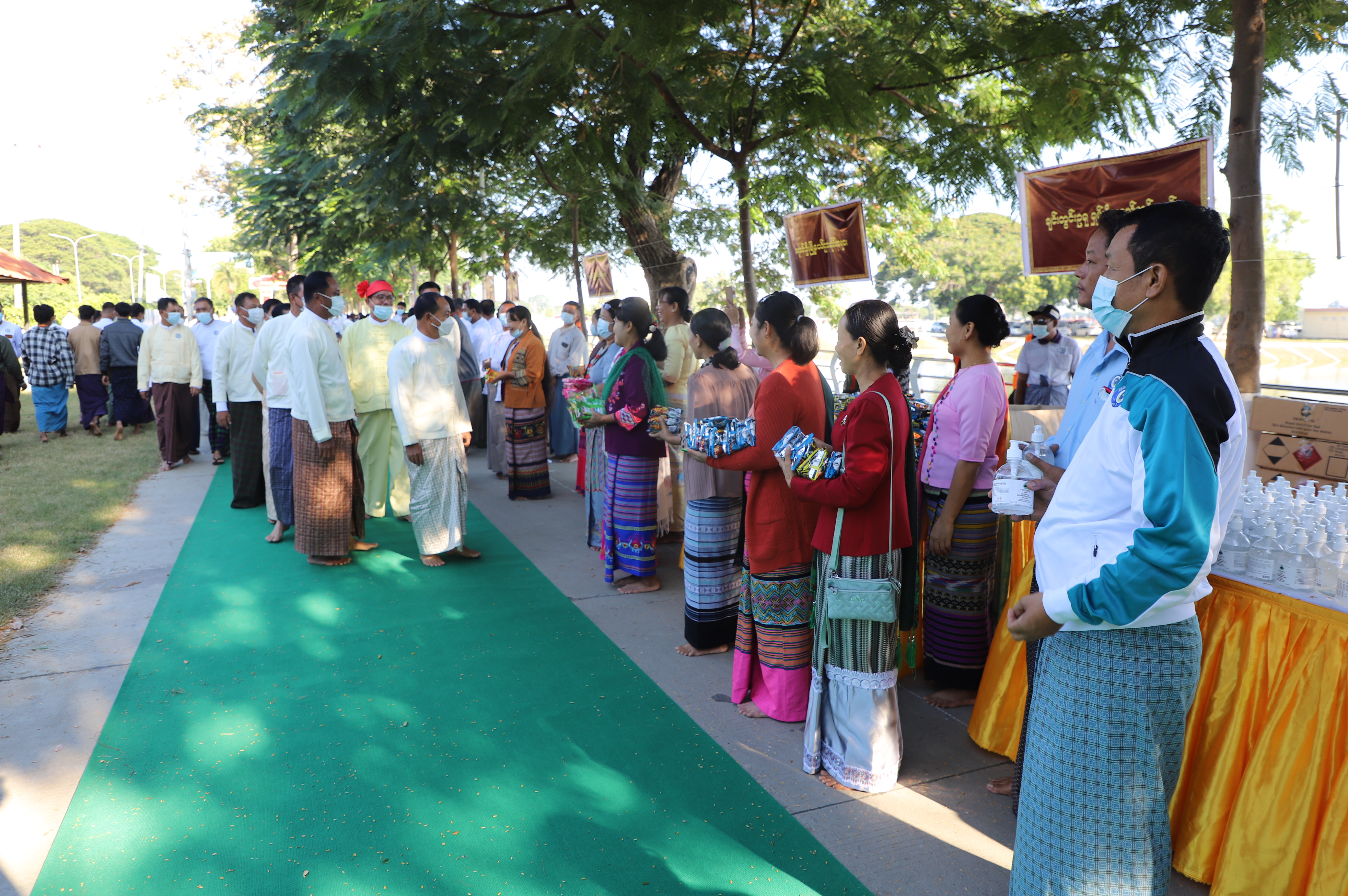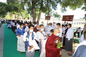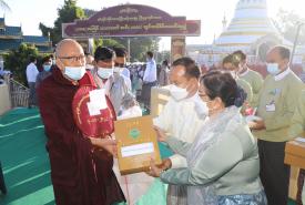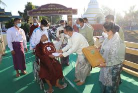 ဆက်လက်၍ ဆရာတော်ကြီးများထံ တိုင်းဒေသကြီး ဝန်ကြီးချုပ်နှင့် တာဝန်ရှိသူများက လှူဖွယ်ဝထ္တုပစ္စည်းများ ဆက်ကပ်လှူဒါန်းကြသည်။