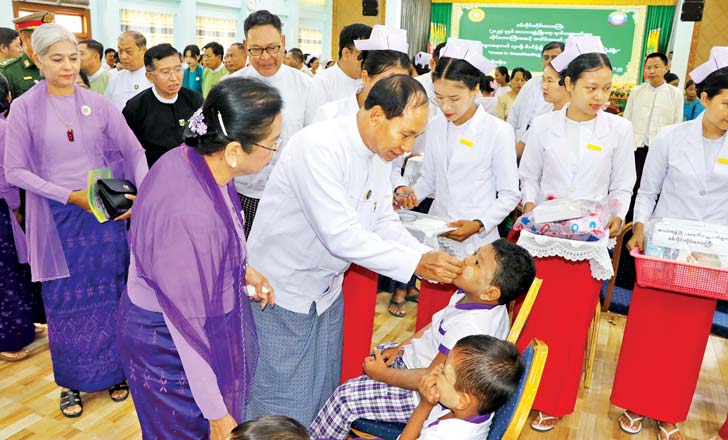 ထို့နောက် တိုင်းဒေသကြီး ဝန်ကြီးချုပ်နှင့် တာဝန်ရှိသူများသည် မူလတန်းကြိုကျောင်းများမှ အသက်ငါးနှစ်အောက် ကလေးငယ်များကို အင်အား ပြည့်ဗီတာမင်အေဆေးလုံးများ တိုက်ကျွေးကြပြီး အမှတ်တရလက်ဆောင်ပစ္စည်းများ ပေးအပ်ကာ တိုင်းဒေသကြီး မိခင်နှင့်ကလေးစောင့်ရှောက်မှုကြီး ကြပ်ရေးအဖွဲ့နာယက၊ ဥက္ကဋ္ဌနှင့် အဖွဲ့ဝင်များက ကိုယ်ဝန်ဆောင်မိခင်များအား အဏုအာဟာရဆေးပြား နှင့် လက်ဆောင်ပစ္စည်းများ ပေးအပ်ကြသည်။