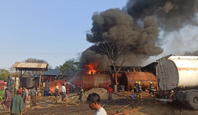 ဖြစ်စဉ်မှာ မြိုင်မြို့နယ်၊ ဗဟင်းကျေးရွာနေ ဦးနန်းမောင် (၆၂)နှစ်ပိုင် ရေနံချက်ဖိုတွင် ကျောက္ကာ(မြောက်)ကျေးရွာနေ ဇင်နိုင်ဦး (၃၅)နှစ်သည် ဆီခြံလုပ်သားများဖြစ်သည့် ပြားသကိုင်းကျေးရွာနေ မင်းကိုနိုင်(၃၀)နှစ်ပါ ၃ ဦးနှင့်အတူ ကန်အတွင်းမှ ဒီဇယ်ဆီများအား YGN 4Q/xxxx (၂၂)ဘီး ဆီဘောက်ဆာယာဉ်အတွင်းသို့ ပိုက်ဖြင့်ထည့်စဉ် ဆီဘောက်ဆာအတွင်း ကျန်ရှိနေသည့် အောက်တိန်းဆီငွေ့နှင့် ဓာတ်ပြုရာမှ မီးလောင်မှုဖြစ်ပွားခဲ့ပြီး ဝိုင်းဝန်းငြှိမ်းသတ်ရာ မိနစ် ၂၀ ခန့်အကြာတွင် မီးငြိမ်းသွားခဲ့ကြောင်း၊ မီးလောင်မှုကြောင့် ဒီဇယ်ဂါလန် ၁၅၀၀ ခန့်၊ ရေအေးစက် ၁ လုံး၊ အဲယားကွန်း ၁ လုံးနှင့် သွပ်မိုး/ကပ်ကာ/မြေစိုက် အဆောက်အဦ ၁ လုံးတို့ မီးလောင်ဆုံးရှုံးခဲ့ပြီး မင်းကိုနိုင်ပါ ၃ ဦးတွင် ခန္ဓာကိုယ်မီးလောင်ဒဏ်ရာများ ရရှိခဲ့သဖြင့် ဇင်နိုင်ဦးအား မုံရွာနယ်မြေရဲစခန်းမှ အမှုဖွင့်အရေးယူထားကြောင်း သတင်းရရှိသည်။