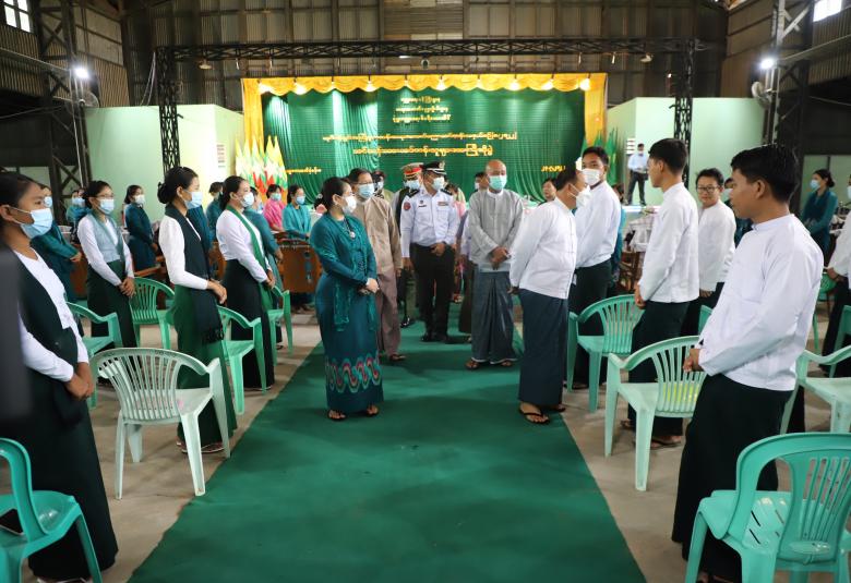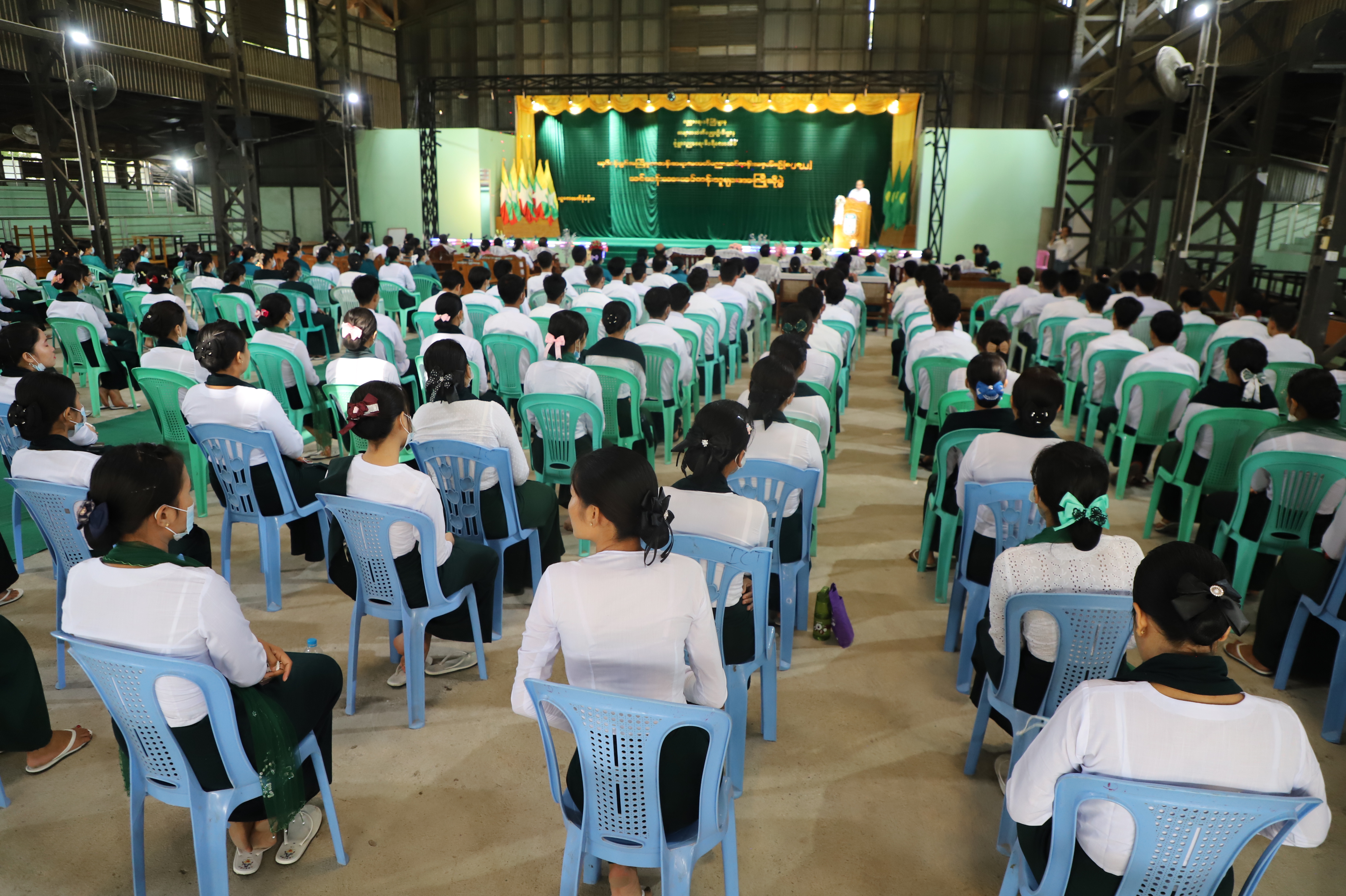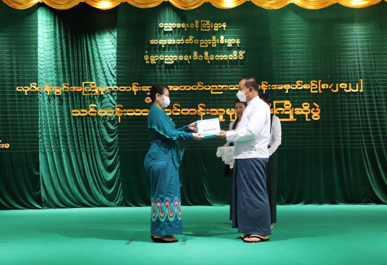 ထို့နောက် တိုင်းဒေသကြီး ဝန်ကြီးချုပ်က မုံရွာပညာရေး ဒီဂရီကောလိပ် ကျောင်းအုပ် ဆရာမကြီးထံ ငွေကျပ် ငါးသိန်းကို လည်းကောင်း၊ တိုင်းဒေသကြီး လူမူရေးရာဝန်ကြီး ဦးအေးလိူင်က သင်တန်းသား သင်တန်းသူများအတွက် ငွေကျပ် ငါးသိန်းကိုလည်းကောင်း ပေးအပ်ကြပြီး ကျောင်းအုပ်ဆရာမကြီး ဒေါ်မင်းမင်းသိမ့်က ကြိုဆိုနှုတ်ခွန်းဆက်စကား ပြောကြားကာ သင်တန်းသား သင်တန်းသူများကိုယ်စား သင်တန်းသားတစ်ဦးက ကျေးဇူးတင်စကား ပြန်လည်ပြောကြားသည်။