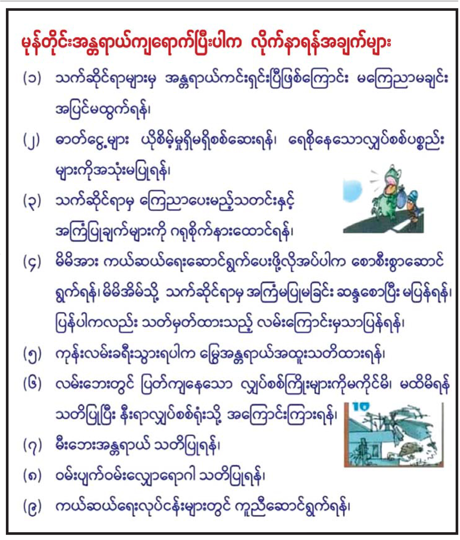 မုန်တိုင်းအန္တရာယ်ကျရောက်ပြီးပါက လိုက်နာရန်အချက်များ
