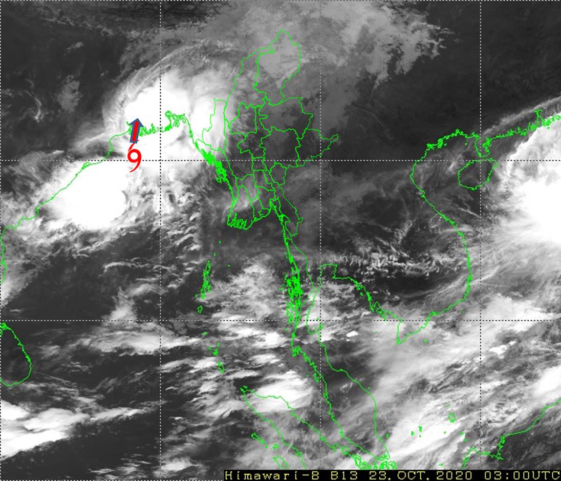 (၁) ယနေ့မြန်မာစံတော်ချိန်(ဝ၉:၃၀)နာရီအချိန် တိုင်းထွာချက်များအရ ဘင်္ဂလားပင်လယ်အော် အနောက်မြောက်ပိုင်း (အိန္ဒိယနိုင်ငံ၊ ဩရိဿပြည်နယ်ကမ်းလွန်) တွင် ဖြစ်ပေါ်နေခဲ့သော မုန်တိုင်းငယ် (Depression)သည် မြောက်-အရှေ့မြောက် ဘက်သို့ ရွေ့လျားခဲ့ပြီး၊ အိန္ဒိယနိုင်ငံ၊ အနောက် ဘင်္ဂလားပြည်နယ် ကမ်းလွန်- ဘင်္ဂလားဒေ့ရှ်နိုင်ငံကမ်းခြေသို့ ရောက်ရှိခဲ့ကာ၊ အိန္ဒိယနိုင်ငံ၊ ဆာဂါ(Sagar)ကျွန်း ၏ တောင်-အရှေ့တောင်ဘက် ရေမိုင် (၃၅)မိုင်ခန့်၊ ဘင်္ဂလားဒေ့ရှ်နိုင်ငံ၊ ခီပူပါရာ (Khepupara)မြို့၏ အနောက်တောင်ဘက် ရေမိုင် (၁၂၀)မိုင်ခန့်နှင့် မြန်မာနိုင်ငံ၊ မောင်တောမြို့၏ အနောက်-အနောက်တောင်ဘက် ရေမိုင် (၂၃၀)မိုင်ခန့်အကွာ ပင်လယ်ပြင်ကို ဗဟိုပြုနေပါသည်။