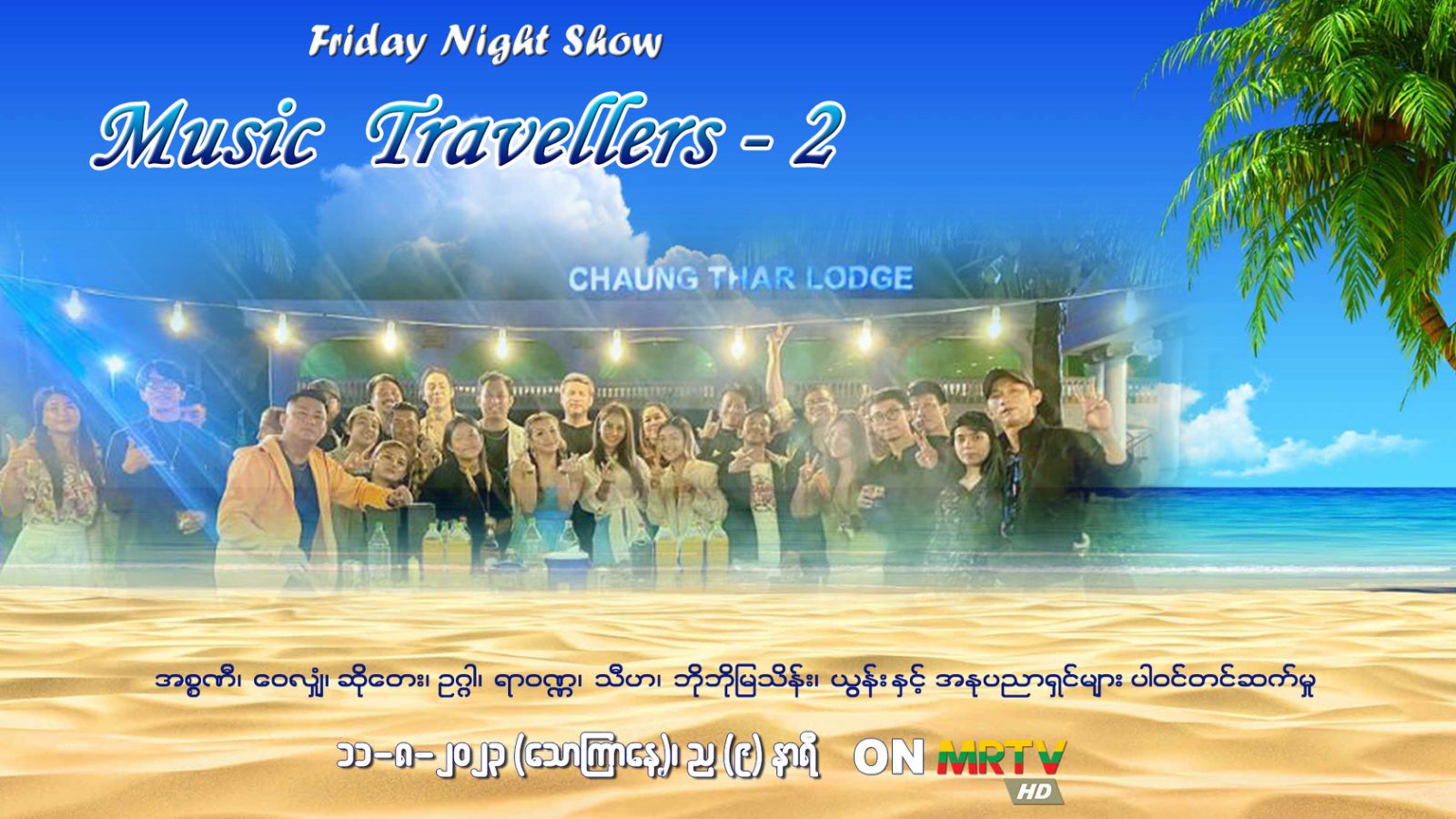 ပြည်သူများ အပန်းပြေစေရန်၊ ပျော်ရွှင်စေရန်နှင့် စိတ်ခွန်အားသစ်များ ရရှိနိုင်ရန်အတွက် မြန်မာ့အသံနှင့် ရုပ်မြင်သံကြားမှ ဖျော်ဖြေရေးအစီအစဉ်များကို တိုးမြှင့်တင်ဆက်လျက်ရှိရာ  Friday Night Show အစီအစဉ် ဆန်းသစ်တင်ဆက်မှုအဖြစ်   “ Music Travellers -2 ” တေးဂီတဖျော်ဖြေပွဲကို ၂၀၂၃ခုနှစ်၊ ဩဂုတ် ၁၁ ရက်၊ သောကြာနေ့ ည(၈)နာရီ သတင်းများ အပြီးတွင် MRTV-HD Channel မှ  ထုတ်လွှင့်ပြသမည် ဖြစ်သည်။