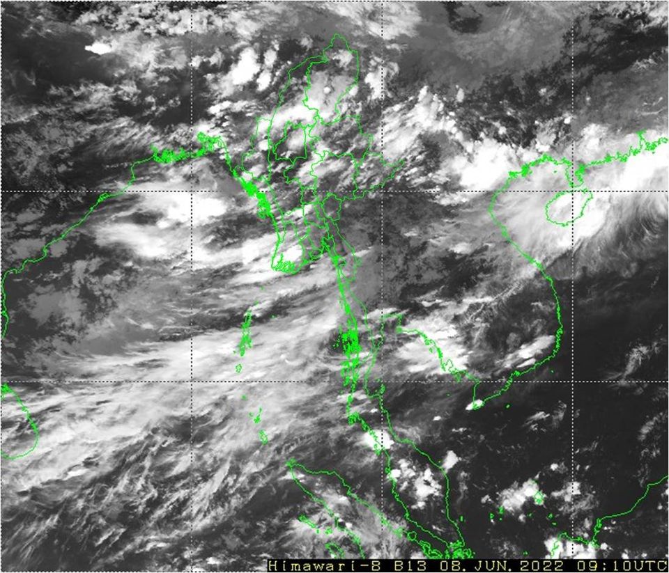 မနက်ဖြန်နံနက်အထိခန့်မှန်းချက်မှာ စစ်ကိုင်းတိုင်းဒေသကြီးအောက်ပိုင်း၊ မန္တလေးတိုင်းဒေသကြီး၊ မကွေးတိုင်းဒေသကြီးနှင့် ကယားပြည်နယ်တို့တွင် နေရာကျဲကျဲ၊ ချင်းပြည်နယ်တွင် နေရာစိပ်စိပ်နှင့် ကျန်တိုင်းဒေသကြီးနှင့် ပြည်နယ်တို့တွင် နေရာအနှံ့အပြားမိုးထစ်ချုန်းရွာပြီး စစ်ကိုင်းတိုင်းဒေသကြီး အထက်ပိုင်း၊ ဧရာဝတီတိုင်းဒေသကြီး၊ ကချင်ပြည်နယ်၊ ရခိုင်ပြည်နယ်နှင့် မွန်ပြည်နယ်တို့တွင် နေရာကွက်၍ မိုးကြီးနိုင်သည်။ ရွာရန်ရာနှုန်းပြည့် ဖြစ်သည်။