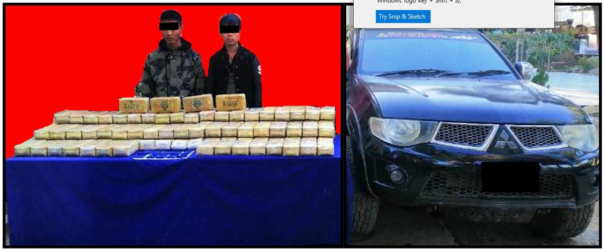 အလားတူယင်းနေ့ မွန်းလွဲပိုင်းတွင် မူးယစ်ဆေးဝါး တားဆီးနှိမ်နင်းရေးရဲတပ်ဖွဲ့မှ တပ်ဖွဲ့ဝင်များ ပါဝင်သော ပူးပေါင်းအဖွဲ့သည် မိုင်းပန်မြို့နယ်၊ မိုင်းပန်-မိုင်းတုံသွားကားလမ်း၊ တာဆန်း ပူးပေါင်းစစ်ဆေးရေးဂိတ်တွင် စိုင်းစွမ်ဟန် မောင်းနှင်ပြီး စိုင်းနော်ခမ်း လိုက်ပါလာသည့် MITSUBISHI TRITON အမျိုးအစား မော်တော်ယာဉ်ကိုရပ်တန့်ရှာဖွေရာ တန်ဖိုးငွေကျပ်သိန်း ၁၁၅၀ဝ တန်ဖိုးရှိ စိတ်ကြွရူးသွပ် ဆေးပြား ၁၁ ဒသမ ၅ သိန်းနှင့် လက်ကိုင်ဖုန်း ၂ လုံးတို့ကို သိမ်းဆည်းရမိခဲ့သဖြင့် ၎င်းတို့အား မူးယစ်ဆေးဝါးနှင့် စိတ်ကိုပြောင်းလဲစေသော ဆေးဝါးများဆိုင်ရာ ဥပဒေအရ အရေးယူထားကြောင်း ရဲပြန်ကြားမှ သိရသည်။