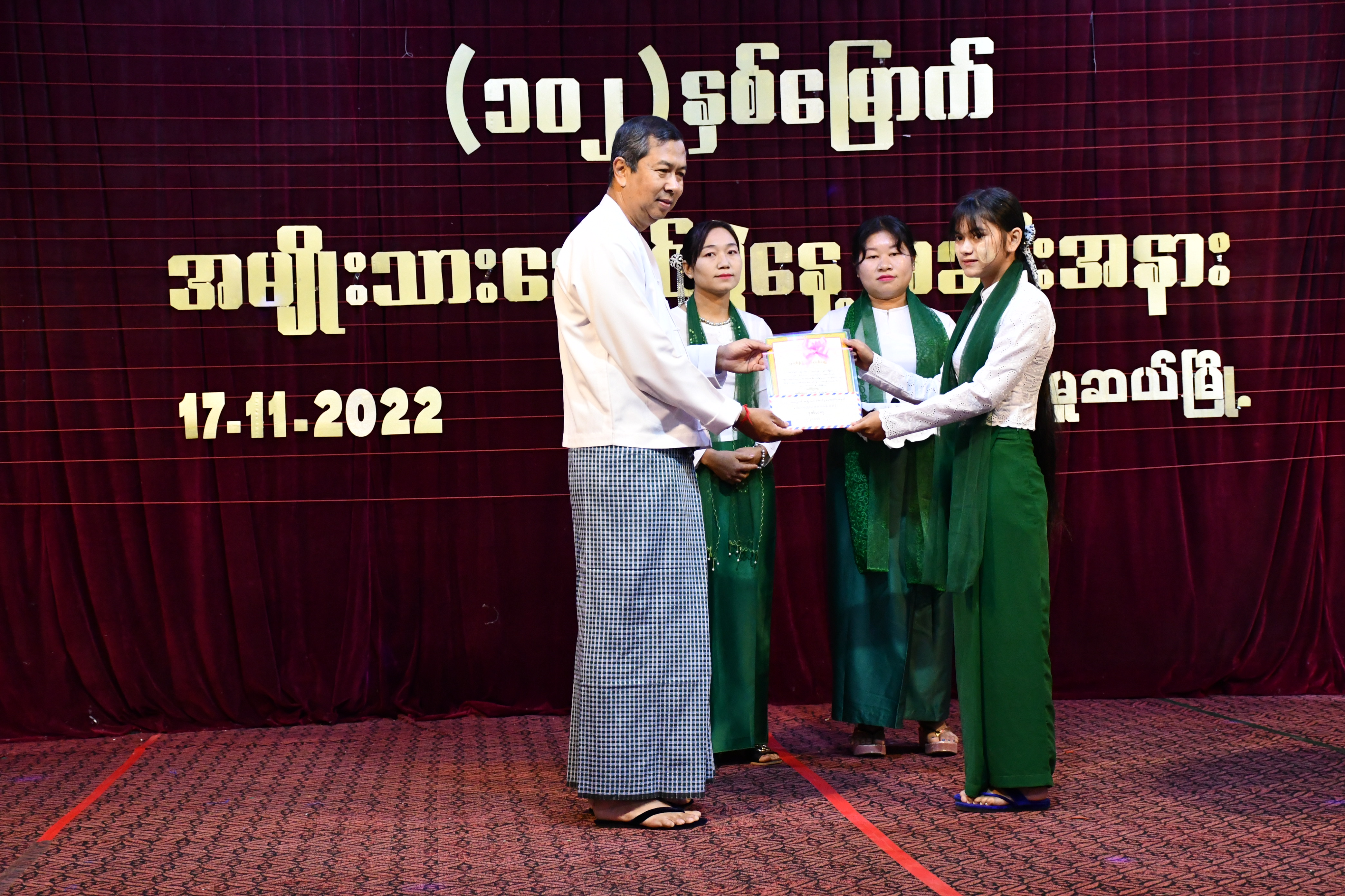 (၁၀၂)နှစ်မြောက် အမျိုးသားအောင်ပွဲနေ့ အထိမ်းအမှတ် သဝဏ်လွှာဖတ်ကြားခြင်းနှင့် ဆုချီးမြှင့်ပွဲ အခမ်းအနားကို ယနေ့ နံနက် ၈ နာရီခွဲက ရှမ်းပြည်နယ်(မြောက်ပိုင်း)၊ မူဆယ်မြို့၊ အ.ထ.က(၂)ကျောင်းခန်းမ၌ ကျင်းပခဲ့သည်။