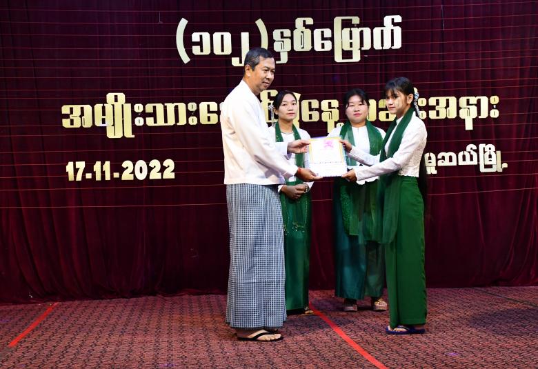 ဆက်လက်ပြီး ပညားရေးဌာနမှ စီစဉ်ကျင်းပသည့် (၁၀၂) နှစ်မြောက် အမျိုးသားနေ့အောင်ပွဲနေ့ အထိမ်းအမှတ်အကြိုအဖြစ် ခရိုင်အဆင့် စာစီစာကုံးပြိုင်ပွဲတွင် ဆုရရှိသည့် ကျောင်းသား ကျောင်းသူများအား မူဆယ်ခရိုင်အုပ်ချုပ်ရေးမှူးနှင့် တာဝန်ရှိဌာနဆိုင်ရာများက ပေးအပ် ချီးမြှင့်ခဲ့သည်။