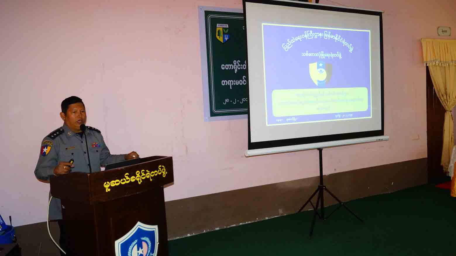ရှမ်းပြည်နယ်(မြောက်ပိုင်း) မူဆယ်ခရိုင် မူဆယ်မြို့ မြို့မရဲစခန်း အောင်ဆန်းသူရိယ အေးချိုရိပ်သာခန်းမတွင် ယနေ့ နံနက် ၉ နာရီက တောရိုင်းတိရစ္ဆာန်နှင့် သစ်ပင်ပန်းမန်များ ကာကွယ်စောင့်ရှောက်ရေး၊ တရားမဝင် ရောင်းဝယ်မှုများ ပပျောက်ရေး အသိပညာပေး ဟောပြောပွဲ အခမ်းအနား ကျင်းပခဲ့သည်။