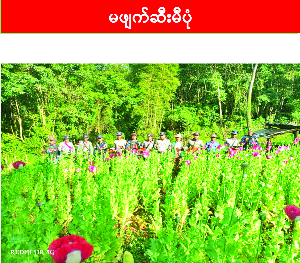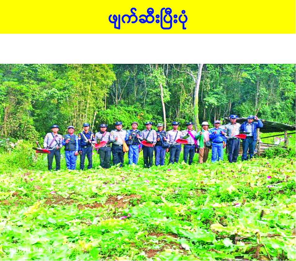 ထိုသို့ ဆောင်ရွက်လျက်ရှိရာ တပ်မတော်သားများ၊ မြန်မာနိုင်ငံ ရဲတပ်ဖွဲ့၊ အထွေထွေအုပ်ချုပ်ရေးဦးစီးဌာန၊ သစ်တောဦးစီးဌာန၊ လယ်ယာမြေစီမံခန့်ခွဲရေးနှင့် စာရင်းအင်းဦးစီးဌာနတို့ အပါအဝင် ဆက်စပ်ဦးစီးဌာနများ ပါဝင်သော ပူးပေါင်းအဖွဲ့များ၊ နယ်မြေခံပြည်သူ့စစ်အဖွဲ့ဝင်များနှင့် ဒေသခံတိုင်းရင်းသား ပြည်သူများပါဝင်သော ပူးပေါင်း အဖွဲ့သည် ဒီဇင်ဘာ ၉ ရက်နှင့် ယနေ့တို့တွင်လည်း ရှမ်းပြည်နယ် (တောင်ပိုင်း) လွိုင်လင်မြို့နယ် ဆင်ခြေဖုံးကျေးရွာအုပ်စု လုံအောင်ကျေးရွာ၏ အနောက်တောင်ဘက် နှစ်မိုင်ခန့်အကွာရှိ အမြင့်နှစ်ပေခွဲ သီးပွင့်ဆဲဘိန်းခင်း ၃၅ ဧကကိုလည်းကောင်း၊ စံဖူးကျေးရွာ၏ အနောက်တောင်ဘက် နှစ်မိုင်ခန့်အကွာရှိ အမြင့် သုံးပေခွဲ သီးပွင့်ဆဲဘိန်းခင်း ၂၅ ဧက ကိုလည်းကောင်း တောင်နောက်ကျေးရွာအုပ်စု တောင်နောက်ကျေးရွာ၏ အနောက်တောင်ဘက် သုံးမိုင်ခန့်အကွာရှိ အမြင့် သုံးပေ သီးပွင့်ဆဲဘိန်းခင်း ဧက ၃၀ နှင့် ကျေးရွာ၏ အနောက်ဘက် ၃ မိုင် ၄ ဖာလုံခန့်အကွာရှိ အမြင့် သုံးပေ သီးပွင့်ဆဲဘိန်းခင်း ၂၅ ဧကကိုလည်းကောင်း စုစုပေါင်း ဘိန်းခင်း ၁၁၅ ဧကတို့ကို သွားရောက်ဖျက်ဆီးခဲ့ကြောင်းနှင့် ဘိန်းခင်းဖျက်ဆီးမှုများကို ဆက်လက်ဆောင်ရွက်သွားမည်ဖြစ်ကြောင်း သိရသည်။