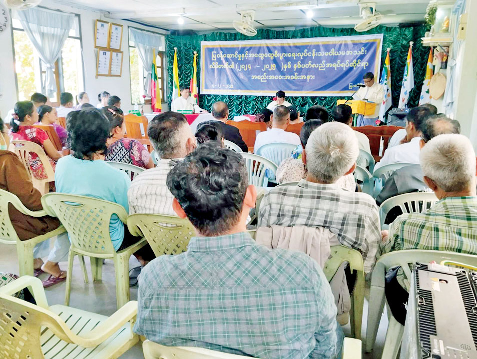 ကရင်ပြည်နယ် မြဝတီခရိုင် မြဝတီမြို့ မြဝန်ဆောင်မှုနှင့် အထွေထွေ စီးပွားရေးလုပ်ငန်း သမဝါယမအသင်း လီမိတက်၏ ၂၀၂၄-၂၀၂၅ ဘဏ္ဍာနှစ် အရပ်ရပ်ဆိုင်ရာနှစ်ပတ်လည် သင်းလုံးကျွတ် အစည်းအဝေးကို ယနေ့နံနက်ပိုင်းက မြ သ/မ လီမိတက်ရုံး၌ ကျင်းပရာ မြဝန်ဆောင်မှုနှင့် အထွေထွေ စီးပွားရေးလုပ်ငန်း သမဝါယမအသင်းဥက္ကဋ္ဌ ခရိုင်စီမံခန့်ခွဲရေးနှင့် အုပ်ချုပ်ရေးကော်မတီအဖွဲ့ဝင် (၂) ဦးစိန်သောင်းက အမှာစကား ပြောကြားသည်။