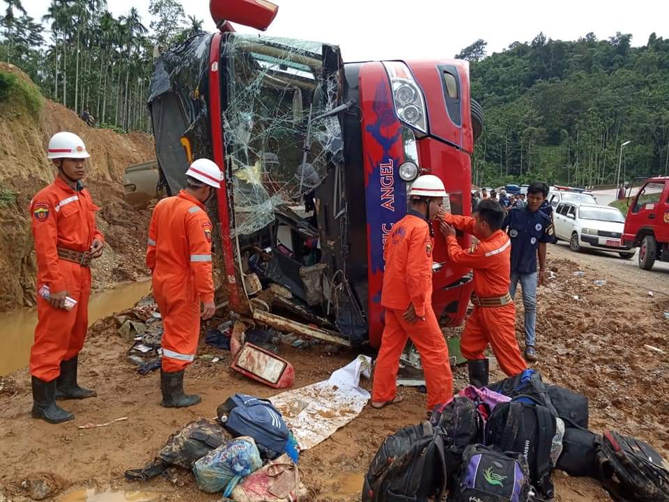 ယနေ့ မွန်းလွဲ ၂ နာရီ ၃၅ မိနစ်ခန့်က ကရင်ပြည်နယ်၊ မြဝတီမြို့၊ မြဝတီ-ကော့ကရိတ်သွား အာရှကားလမ်း၊ မိုင်တိုင်အမှတ် (၁၅၈)မိုင်နှင့် (၁၅၉)မိုင်ကြားတွင် YUTONG အမျိုးအစား(အနီရောင်) ခရီးသည်တင်ယာဉ် (၁)စီး တိမ်းမှောက်မှုဖြစ်ပွားပြီး အမျိုးသမီးတစ်ဦးသေဆုံးခဲ့ကာ ၃၆ ဦး ထိခိုက်ဒဏ်ရာရရှိခဲ့ကြောင်း မြန်မာနိုင်ငံ မီးသတ်တပ်ဖွဲ့ သတင်းထုတ်ပြန်ချက်အရ သိရှိရသည်။
