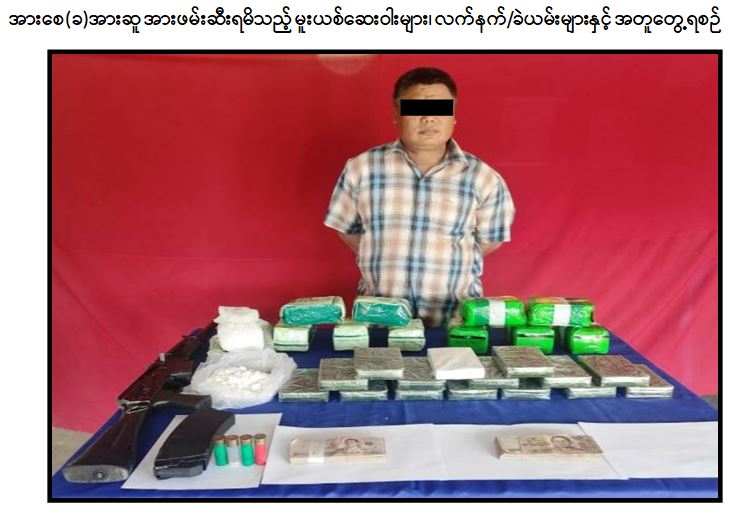 ထို့အတူ ဇွန် ၆ ရက် မွန်းလွဲပိုင်းက မူးယစ်ဆေးဝါးတားဆီးနှိမ်နင်းရေးရဲတပ်ဖွဲ့မှ မိုင်းဆတ် မြို့နယ်၊ မိုင်းတွန်း(တောင်ပေါ်)ကျေးရွာအုပ်စု၊ ပူနားကိုကျေးရွာနေ အားစေ(ခ)အားဆူ၏နေအိမ်ကို ဝင်ရောက် ရှာဖွေရာ ဘိန်းဖြူ ၄ ဒသမ ၉၅ ကီလို၊ ကက်တမင်း ၁၀ ဒသမ ၅ ကီလို၊ ၁၂ ဗို့ သေနတ် ၁ လက်၊ ၎င်းကျည်အိမ် ၁ ခု၊ ၎င်းကျည် ၄ တောင့်၊ ထိုင်းဘတ်ငွေ ၂ သိန်း၊ ဖုန်းတစ်လုံးတို့ကို သိမ်းဆည်း ရမိခဲ့ရ သဖြင့် ၎င်းတို့အား မူးယစ်ဆေးဝါးနှင့်စိတ်ကိုပြောင်းလဲစေသောဆေးဝါးများဆိုင်ရာ ဉပဒေအရ အရေးယူ ထားကြောင်း ရဲပြန်ကြားမှ သိရသည်။