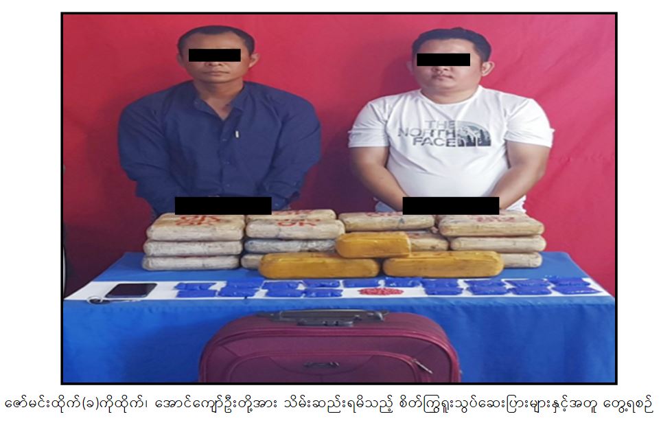အလားတူ ယင်းနေ့ ညနေ ၆ နာရီခွဲတွင် မူးယစ်ဆေးဝါးတားဆီးနှိမ်နင်းရေးရဲတပ်ဖွဲ့မှ တပ်ဖွဲ့ဝင်များပါဝင်သော ပူးပေါင်းအဖွဲ့သည် နောင်ချိုမြို့နယ်၊ ကန်ကြီးကျေးရွာအုပ်စု၊ ကန်ကြီးကျေးရွာအနီးရှိ နောင်ချို-ရပ်စောက် သွားကားလမ်းတွင် ကျော်ကိုကိုစိုး မောင်းနှင်လာသည့် ဆိုင်ကယ်ကို ရပ်တန့်စစ်ဆေးရှာဖွေရာ စိတ်ကြွရူးသွပ်ဆေးပြား ၂၀,၀၀၀ ကိုလည်းကောင်း၊ ထို့အတူ ယင်းနေ့ ညနေ ၃ နာရီခွဲတွင် မူးယစ်ဆေးဝါးတားဆီးနှိမ်နင်းရေးရဲတပ်ဖွဲ့မှ တပ်ဖွဲ့ဝင်များပါဝင်သော ပူးပေါင်းအဖွဲ့သည် တန့်ယန်းမြို့၊ အမှတ်(၅)ရပ်ကွက်နေ လုံးဆန်ကော်၏နေအိမ်သို့ ဝင်ရောက်ရှာဖွေရာ စိတ်ကြွရူးသွပ် ဆေးပြား ၃,၀၀၀ ကိုလည်းကောင်း သိမ်းဆည်းရမိခဲ့သဖြင့် ၎င်းတို့အား မူးယစ်ဆေးဝါးနှင့် စိတ်ကိုပြောင်းလဲစေသော ဆေးဝါးများဆိုင်ရာဥပဒေအရ အရေးယူထားကြောင်း မြန်မာနိုင်ငံရဲတပ်ဖွဲ့မှ သိရသည်။