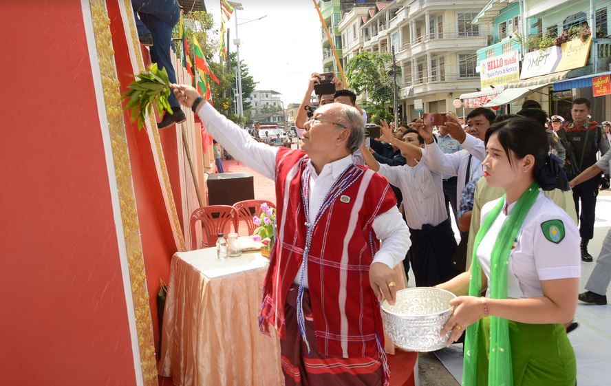 ကရင်ပြည်နယ် မြဝတီခရိုင် မြဝတီမြို့ဝင် ဆိုင်းဘုတ်ဖွင့်ပွဲနှင့် အာဇာနည် ပန်းခြံ မုခ်ဦးဖွင့်ပွဲ အခမ်းအနားကိုယနေ့နံနက်ပိုင်းတွင် မြဝတီမြို့၌ ကျင်းပရာ အမျိုးသား လွှတ်တော်ဥက္ကဋ္ဌ မန်းဝင်းခိုင်သန်း တက်ရောက်ဖွင့်လှစ်ပေးသည်။
