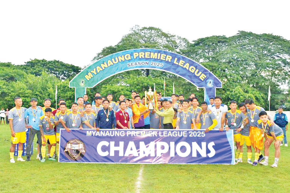 ဧရာဝတီတိုင်းဒေသကြီး မြန်အောင်မြို့နယ် Myanaung Premier League Season 2025 အမျိုးသားအလွတ်တန်း အမှတ်ပေးဘောလုံးပြိုင်ပွဲ ဆုပေးပွဲအခမ်းအနားကို နိုဝင်ဘာ ၂ ရက် ညနေပိုင်းက မြန်အောင်မြို့ ပြည်သူ့အားကစားကွင်း၌ ကျင်းပသည်။
