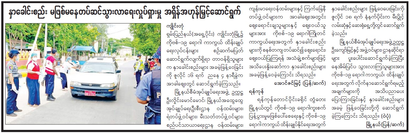 နှာခေါင်းစည်း မဖြစ်မနေ တပ်ဆင်သွားလာမှု အရှိန်အဟုန်မြှင့်ဆောင်ရွက်