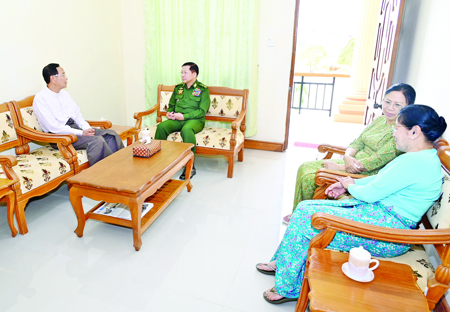 တွေ့ဆုံစဉ် နိုင်ငံတော်စီမံ အုပ်ချုပ်ရေးကောင်စီ ဥက္ကဋ္ဌ တပ်မတော်ကာကွယ်ရေး ဦးစီးချုပ်က တပ်မတော်၏ အစဉ်အလာကောင်းများကို ဆက်လက်ထိန်းသိမ်းဆောင်ရွက်လျက်ရှိပြီး စွမ်းရည် စွမ်းပကား မြင့်မားစေရေးအတွက် မြှင့်တင်ဆောင်ရွက်လျက်ရှိမှု၊ ယခုကဲ့သို့ တပ်မတော်နေ့စစ်ရေးပြ အခမ်းအနားသို့ တက်ရောက်ချီးမြှင့်ပေးသည့်အတွက် ကျေးဇူးတင်ရှိမှုနှင့် နိုင်ငံတော်တည်ငြိမ် အေးချမ်းရေးအတွက် တပ်မတော်အနေဖြင့် အလေးထားဆောင်ရွက်လျက်ရှိမှု၊ နိုင်ငံတော် စီမံအုပ်ချုပ်ရေးကောင်စီအနေဖြင့် နိုင်ငံတော်ဘက်စုံဖွံ့ဖြိုးတိုးတက်ရေးအတွက် ဆောင်ရွက်လျက်ရှိမှု၊ တစ်မျိုးသားလုံး ပညာရည်မြင့်မားရေးအတွက် ပညာရေးကို အားပေးမြှင့်တင်ဆောင်ရွက်လျက်ရှိမှု၊ ကျောင်းပညာရေးအပြင် ကျောင်းပြင်ပ ပညာရေးနှင့် စာကြည့်တိုက်လုပ်ငန်းများကိုလည်း အားပေးမြှင့်တင် ဆောင်ရွက်လျက်ရှိမှုတို့နှင့်ပတ်သက်၍ ဆွေးနွေးပြောကြားခဲ့ရာ အငြိမ်းစား တပ်မတော်အရာရှိကြီးများက ယခုကဲ့သို့ တပ်မတော်နေ့ စစ်ရေးပြအခမ်းအနားသို့ တက်ရောက်ရသည့် အတွက် ဂုဏ်ယူဝမ်းမြောက်ရမှု၊ နိုင်ငံတော်စီမံအုပ်ချုပ်ရေးကောင်စီဥက္ကဋ္ဌ တပ်မတော်ကာကွယ်ရေး ဦးစီးချုပ်အနေဖြင့် နိုင်ငံ့တာဝန်များကို ဘက်ပေါင်းစုံမှ လစ်ဟင်းမှုမရှိစေရေး ကြိုးပမ်းဆောင်ရွက်နေမှုများကို အားပေးအသိအမှတ်ပြုလျက်ရှိမှု၊ နိုင်ငံတော်အကျိုးကို ဆတက်ထမ်းပိုး သယ်ပိုးနိုင်စေရေး၊ တည်ငြိမ်အေးချမ်းပြီး ဘက်စုံဖွံ့ဖြိုးတိုးတက်စေရေးတို့အတွက် ဆုမွန်ကောင်း တောင်းလျက်ရှိမှုနှင့် အခြားဩဝါဒ စကားများကို ပြန်လည်ပြောကြားခဲ့ကြကြောင်း သိရသည်။
