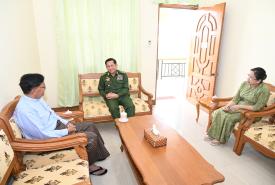 ၂၀၂၅ ခုနှစ် မတ်လ ၂၇ ရက်နေ့ တွင်ကျရောက်သည့် နှစ် (၈၀) ပြည့် တပ်မတော်နေ့ စစ်ရေးပြအခမ်းအနား တက်ရောက်ရန် နေပြည်တော်ရှိ ဘုရင့်နောင်ရိပ်သာ၌ ခေတ္တတည်းခို နေထိုင်လျက်ရှိသည့် တပ်မတော်တွင် တာဝန်ထမ်းဆောင်ခဲ့သော အငြိမ်းစား တပ်မတော်အရာရှိကြီးများနှင့် ဇနီးများအား ယနေ့နံနက်ပိုင်းတွင် နိုင်ငံတော် စီမံအုပ်ချုပ်ရေးကောင်စီ ဥက္ကဋ္ဌ တပ်မတော်ကာကွယ်ရေး ဦးစီးချုပ် ဗိုလ်ချုပ်မှူးကြီး မင်းအောင်လှိုင်နှင့် ဇနီးဒေါ်ကြူကြူလှ တို့က သွားရောက်တွေ့ဆုံဂါရဝ ပြုနှုတ်ဆက်သည်။
