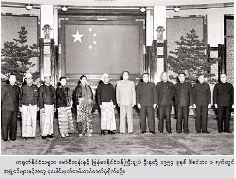 တရုတ်-မြန်မာ နှစ်နိုင်ငံသည် တောတောင်ရေမြေချင်း ဆက်စပ်လျက်ရှိပြီး ခေတ်အဆက်ဆက် အိမ်နီးချင်းများ အဖြစ် ရင်းနှီးစွာနေထိုင်ခဲ့ကြပါသည်။ မြန်မာစကား၌ ဆွေမျိုးပေါက်ဖော်ဆိုသည်မှာ တစ်အူထုံဆင်း ညီအစ်ကိုဟု အဓိပ္ပာယ်ရပါသည်။ နှစ်နိုင်ငံပြည်သူများသည် ရှေးပဝေသဏီမှစ၍ ချစ်ခင်ရင်းနှီးစွာနေထိုင်ခဲ့ကြပြီး ဆွေမျိုးပေါက်ဖော်ချစ်ကြည်ရေး သမိုင်းကာလရှည်ကြာစွာ တည်ရှိနေပါသည်။ အေဒီ ၄ ရာစုတုန်းက ကျွန်တော်တို့၏ ဘိုးဘွားများသည် စီချွမ်-ယူနန်-မြန်မာအိန္ဒိယကို ဖြတ်သန်းသည့် “ရွှေလမ်းငွေလမ်း”ကို ဖောက်လုပ်ခဲ့ပြီး ကုန်သွယ်မှု ပြုလုပ်ခဲ့ကြပါသည်။ တရုတ်ထန်မင်းဆက်ခေတ်က မြန်မာပျူခေတ်မင်းသား ဦးဆောင်သည့် အနုပညာရှင်များ အဖွဲ့သည် မိုင်ထောင်ချီခရီးနှင်၍ ချန်အန်းမြို့သို့ လာရောက်ခဲ့ရာ တရုတ်နာမည်ကြီး ကဗျာဆရာပိုင်ဂျီးယိက ကျော်ကြားလှသည့် “ပျူတေးသံ” ကဗျာကို ရေးစပ်သီကုံးခဲ့ပါသည်။ မြန်မာနိုင်ငံသည် လူမှုရေးစနစ် ကျင့်သုံးမှု မတူသည့် နိုင်ငံများအနက် တရုတ်ပြည်သူ့သမ္မတနိုင်ငံကို ပထမဆုံး အသိအမှတ်ပြုသည့်နိုင်ငံ ဖြစ်ပါသည်။ နှစ်နိုင်ငံ ခေါင်းဆောင်ဟောင်းများသည် တရုတ်-မြန်မာဆက်ဆံရေး ဖွံ့ဖြိုးတိုးတက်ရေးအတွက် သွေးချွေးပေါင်းများစွာဖြင့် အားထုတ်ကြိုးပမ်းခဲ့ကြပါသည်။ တရုတ်ဝန်ကြီးချုပ် ချူအင်လိုင်းသည် မြန်မာနိုင်ငံသို့ (၉)ကြိမ်တိုင် လာရောက်ခဲ့ပါ သည်။ ဝန်ကြီးချုပ် ချူအင်လိုင်းက မြန်မာအမျိုးသား ဝတ်စုံဆင်မြန်း၍ မြန်မာပြည်သူများနှင့်အတူ အတာ သင်္ကြန်ပွဲတော်ကို နွှဲပျော်ခဲ့ပုံသည် ယနေ့တိုင် လူအများ ပါးစပ်ဖျားတွင် ချီးကျူးပြောဆိုနေကြဆဲ ဖြစ်ပါသည်။
