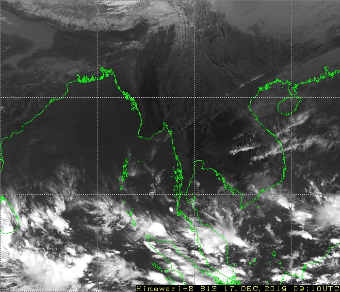 ဘင်္ဂလားပင်လယ်အော်အခြေအနေ။ ကပ္ပလီပင်လယ်ပြင်နှင့် ဘင်္ဂလားပင်လယ်အော်တောင်ပိုင်းတို့တွင် တိမ်အသင့်အတင့် ဖြစ်ထွန်းနေပြီး၊ ကျန်ဘင်္ဂလားပင်လယ်အော်တွင် တိမ်အနည်းငယ် ဖြစ်ထွန်းနေသည်။