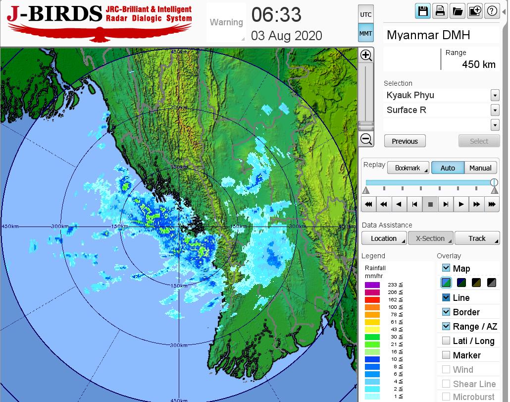 ဘင်္ဂလားပင်လယ်အော်အ‌ခြေအနေ။ ကပ္ပလီပင်လယ်ပြင်နှင့် ဘင်္ဂလားပင်လယ်အော်တောင်ပိုင်းတို့တွင် မုတ်သုံလေ အားအလွန်ကောင်းနေပြီး၊ ကျန်ဘင်္ဂလားပင်လယ်အော်တွင် မုတ်သုံလေ အားကောင်းနေပါသည်။