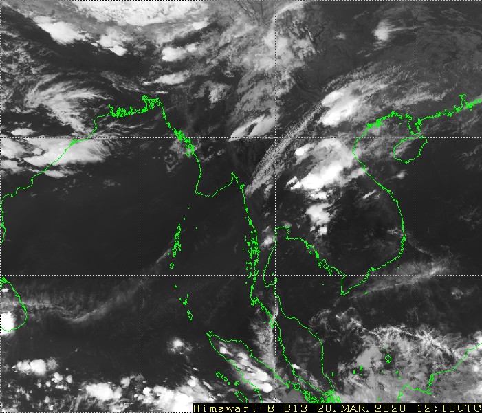 ဘင်္ဂလားပင်လယ်အော်အခြေအနေ။ ကပ္ပလီပင်လယ်ပြင်နှင့် ဘင်္ဂလားပင်လယ်အော်တို့တွင် တိမ်အသင့်အတင့် ဖြစ်ထွန်းနေပါသည်။