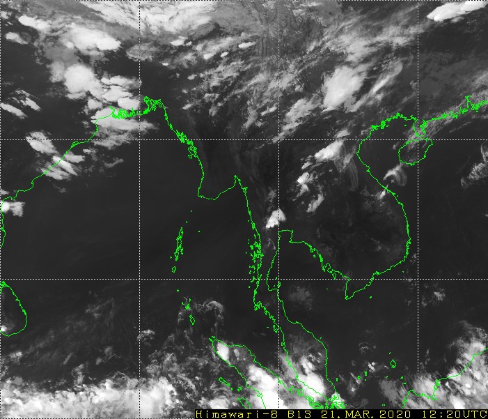 ဘင်္ဂလားပင်လယ်အော်အခြေအနေ။ ကပ္ပလီပင်လယ်ပြင်နှင့် ဘင်္ဂလားပင်လယ်အော်အရှေ့အလယ်ပိုင်း တို့တွင် တိမ်အနည်းငယ် ဖြစ်ထွန်းနေပြီး၊ ကျန်ဘင်္ဂလားပင်လယ်အော်တွင် တိမ်အသင့်အတင့် ဖြစ် ထွန်းနေပါသည်။