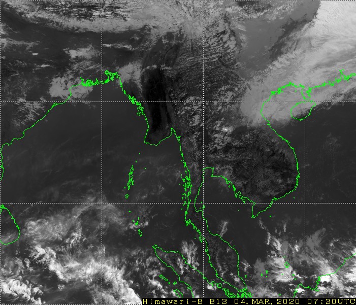 ဘင်္ဂလားပင်လယ်အော်အခြေအနေ။ ကပ္ပလီပင်လယ်ပြင်နှင့် ဘင်္ဂလားပင်လယ်အော်တောင်ပိုင်းတို့တွင် တိမ်အသင့်အတင့် ဖြစ်ထွန်းနေပြီး၊ ကျန်ဘင်္ဂလားပင်လယ်အော်တွင် တိမ်အနည်းငယ် ဖြစ်ထွန်းနေပါသည်။