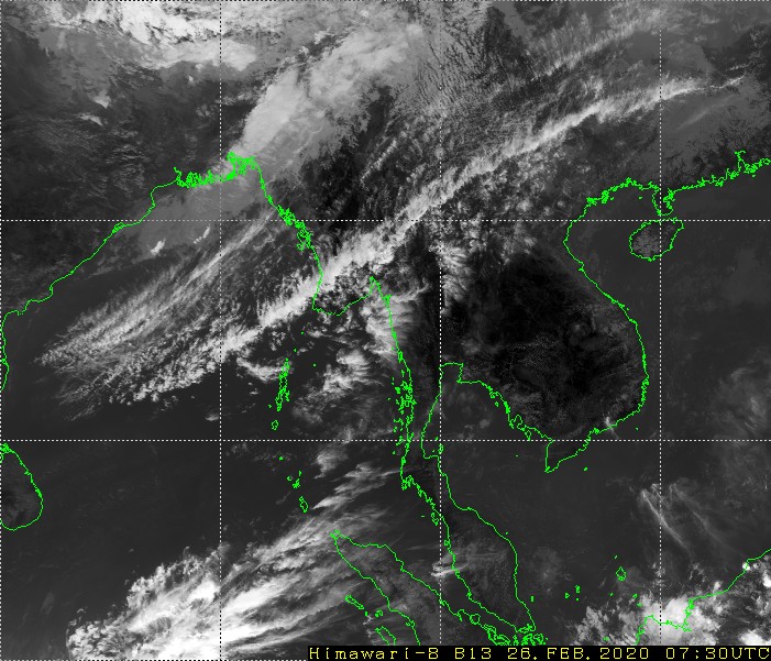 ဘင်္ဂလားပင်လယ်အော်အခြေအနေ။ ဘင်္ဂလားပင်လယ်အော်အနောက်တောင်ပိုင်းတွင် တိမ်အနည်းငယ် ဖြစ်ထွန်းနေပြီး၊ ကပ္ပလီပင်လယ်ပြင်နှင့် ကျန်ဘင်္ဂလားပင်လယ်အော်တို့တွင် တိမ်အသင့်အတင့် ဖြစ်ထွန်းနေပါသည်။