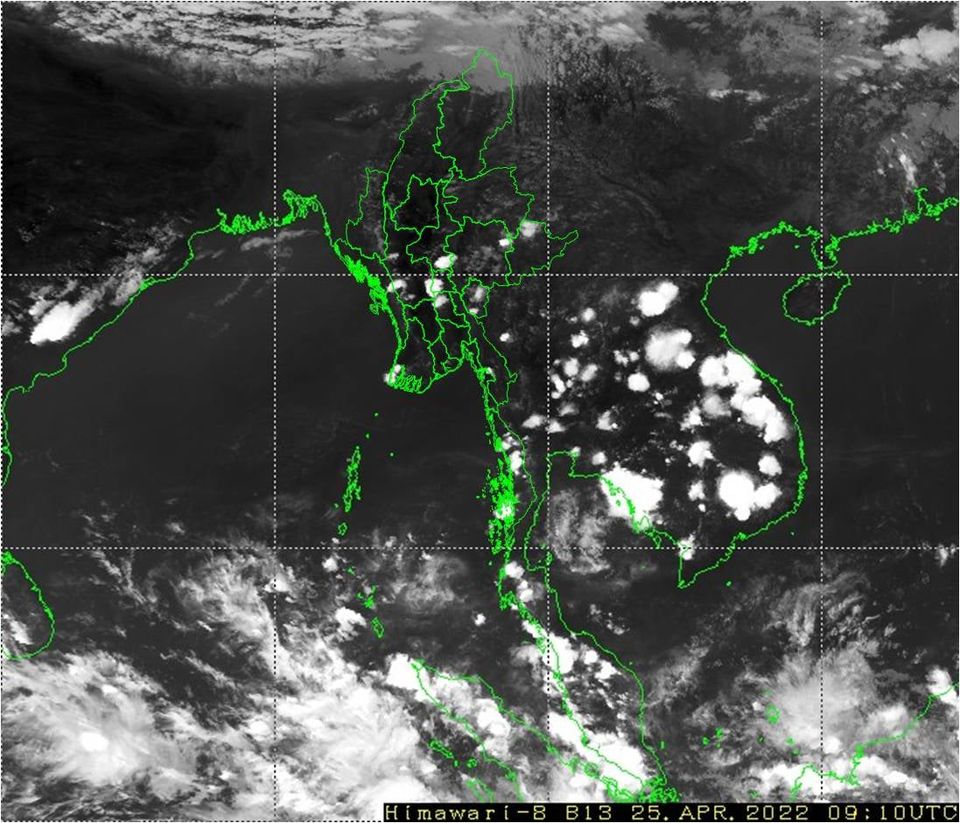 ဘင်္ဂလားပင်လယ်အော်အခြေအနေမှာ ကပ္ပလီပင်လယ်ပြင်တောင်ပိုင်းနှင့် ဘင်္ဂလားပင်လယ်အော် တောင်ပိုင်းတို့တွင်တိမ်အသင့်အတင့် ဖြစ်ထွန်းနေပြီး ကပ္ပလီပင်လယ်ပြင်မြောက်ပိုင်းနှင့် ကျန်ဘင်္ဂလား ပင်လယ်အော်တို့တွင် တိမ်အနည်းငယ် ဖြစ်ထွန်းနေသည်။
