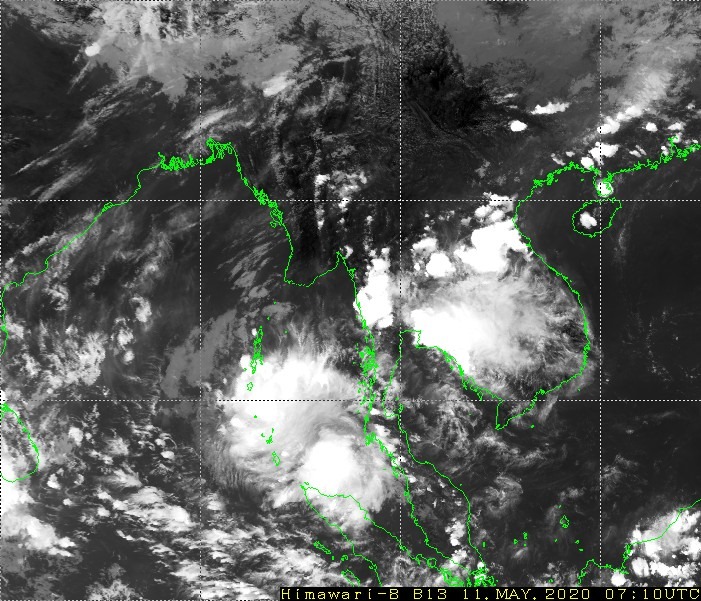 ဘင်္ဂလားပင်လယ်အော် အခြေအနေ။ ကပ္ပလီပင်လယ်ပြင်နှင့် ဘင်္ဂလားပင်လယ်အော်တောင်ပိုင်းတို့တွင် တိမ်အသင့်အတင့်မှ တိမ်ထူထပ်နေပြီး၊ ကျန်ဘင်္ဂလားပင်လယ်အော်တွင် တိမ်အနည်းငယ် ဖြစ်ထွန်းနေ ပါသည်။