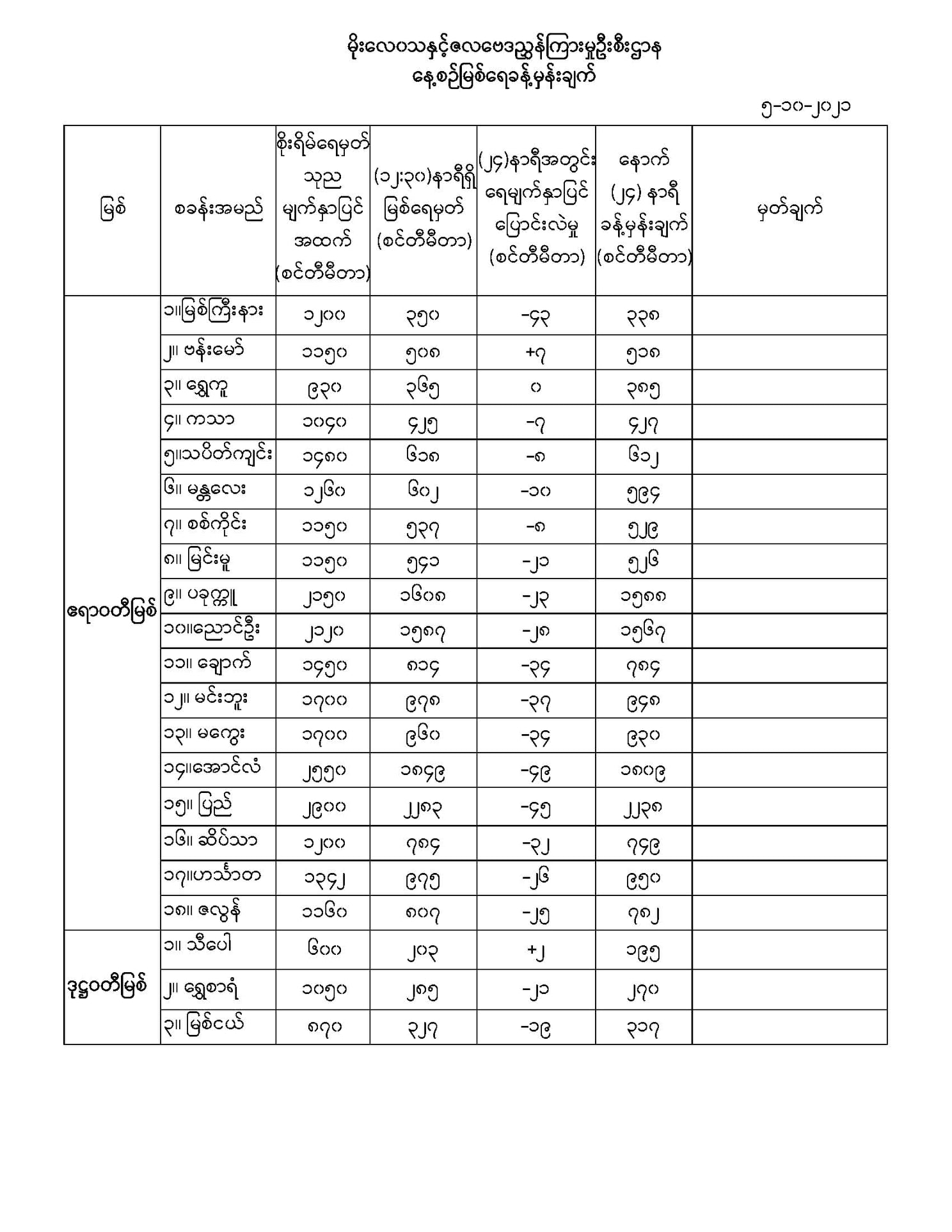 Oct 5,2021 |02:30 | အောက်တိုဘာ ၅ မိုးလေဝသနှင့် ဇလဗေဒညွှန်ကြားမှုဦးစီးဌာနမှ (၅.၁၀.၂၀၂၁) ရက်နေ့တွင် ထုတ်ပြန်သည့် နေ့စဉ်မြစ်ရေခန့်မှန်းချက်များကို အောက်ပါအတိုင်း ဖော်ပြထားပါတယ်... Crd>>>မိုး/ဇလ