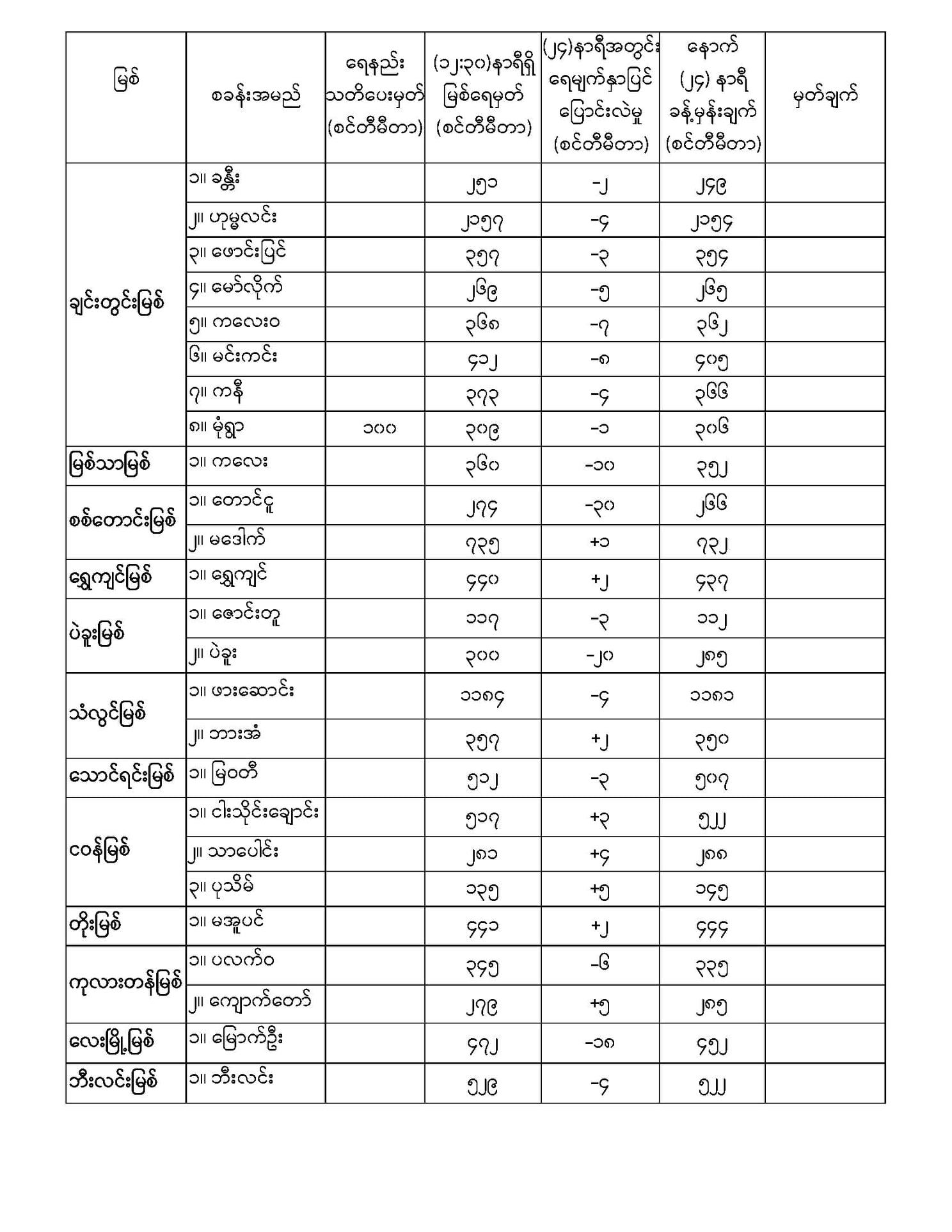 Nov 23,2021 |01:24 | နိုဝင်ဘာ ၂၃ မိုးလေဝသနှင့် ဇလဗေဒညွှန်ကြားမှုဦးစီးဌာနမှ (၂၃.၁၁.၂၀၂၁) ရက်နေ့တွင် ထုတ်ပြန်သည့် နေ့စဉ်မြစ်ရေခန့်မှန်းချက်များကို အောက်ပါအတိုင်း ဖော်ပြထားပါတယ်... Crd>>>မိုး/ဇလ