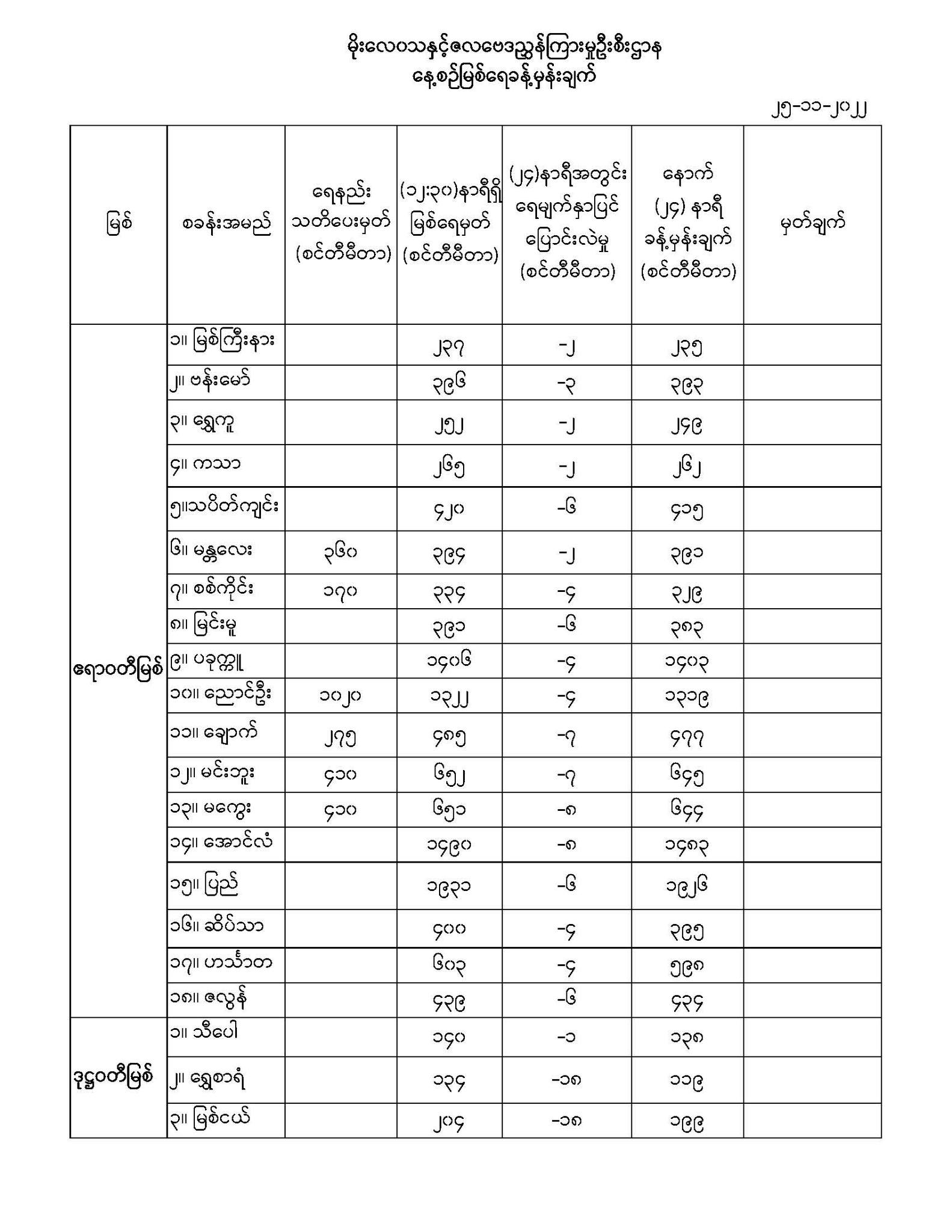 Nov 25,2022 |02:15 | မိုးလေဝသနှင့်ဇလဗေဒညွှန်ကြားမှုဦးစီးဌာနမှ (၂၅.၁၁.၂၀၂၂) ရက်နေ့တွင် ထုတ်ပြန်သည့် နေ့စဉ်မြစ်ရေခန့်မှန်းချက်များကို အောက်ပါအတိုင်း ဖော်ပြထားပါတယ်... Credit> မိုး/ဇလ