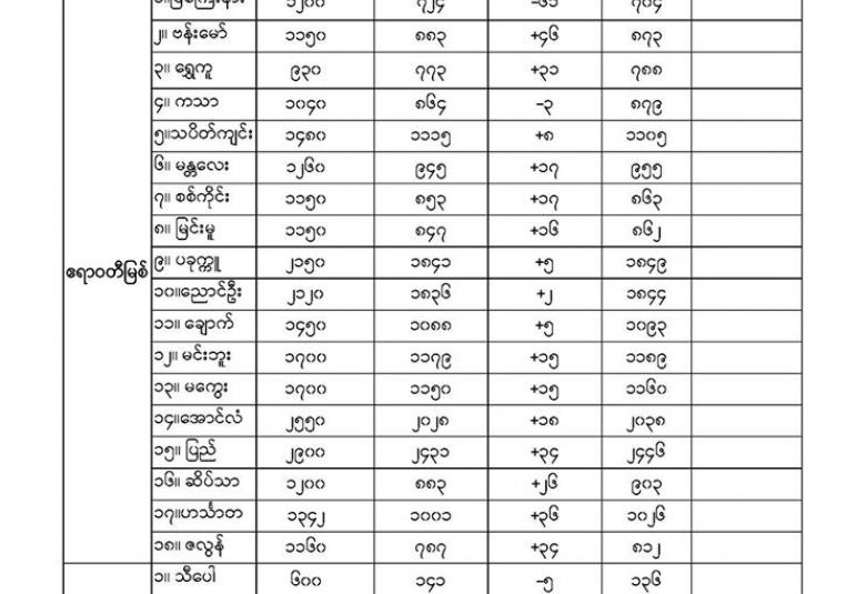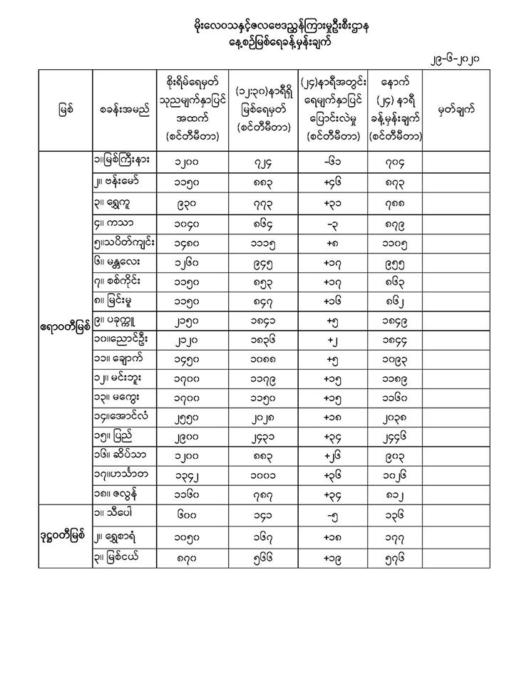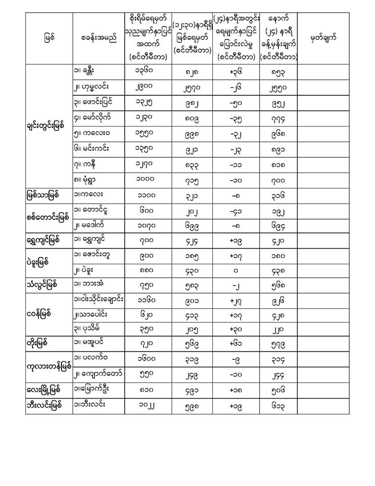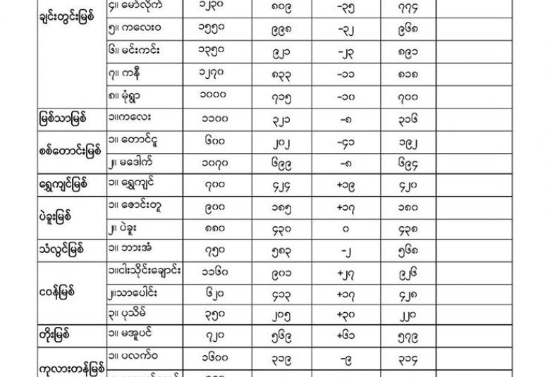 မိုးလေဝသနှင့်ဇလဗေဒညွှန်ကြားမှုဦးစီးဌာနမှ (၂၉.၆.၂၀၂၀) ရက်နေ့တွင် ထုတ်ပြန်သည့် နေ့စဉ်မြစ်ရေခန့်မှန်းချက်များကို အောက်ပါအတိုင်း ဖော်ပြထားပါတယ်။