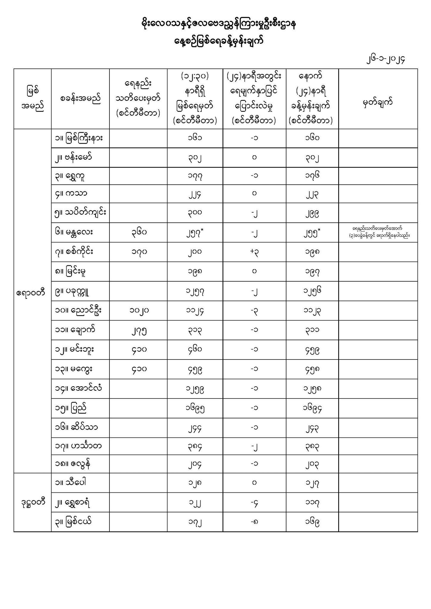 Jan 26,2024 |01:59 | (၂၆.၁.၂၀၂၄) မိုးလေဝသနှင့်ဇလဗေဒညွှန်ကြားမှုဦးစီးဌာနမှ (၂၆.၁.၂၀၂၄) ရက်နေ့တွင် ထုတ်ပြန်သည့် နေ့စဉ်မြစ်ရေခန့်မှန်းချက်များကို အောက်ပါအတိုင်း ဖော်ပြလိုက်ပါတယ်... Crd> မိုး/ဇလ
