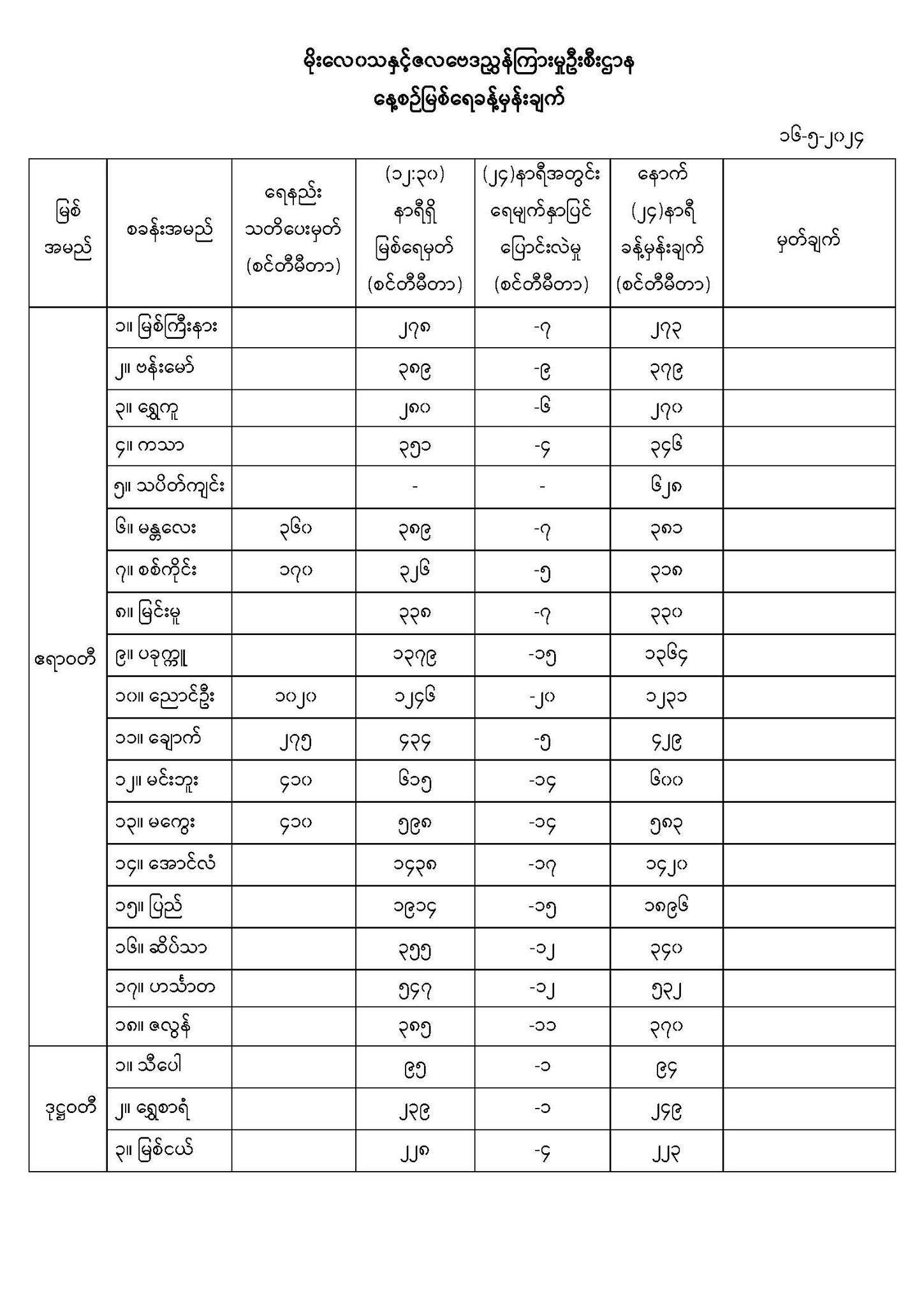 May 16,2024 |03:33 | ၁၆-၅-၂၀၂၄ မိုးလေဝသနှင့်ဇလဗေဒညွှန်ကြားမှုဦးစီးဌာနမှ ၁၆-၅-၂၀၂၄ ရက်နေ့တွင် ထုတ်ပြန်သည့် နေ့စဉ်မြစ်ရေခန့်မှန်းချက်များကို အောက်ပါအတိုင်း ဖော်ပြလိုက်ပါတယ်... Crd> မိုး/ဇလ
