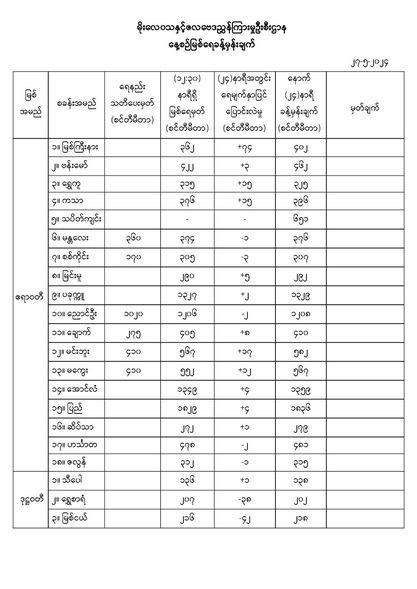 May 27,2024 |03:10 | ၂၇-၅-၂၀၂၄ မိုးလေဝသနှင့်ဇလဗေဒညွှန်ကြားမှုဦးစီးဌာနမှ ၂၇-၅-၂၀၂၄ ရက်နေ့တွင် ထုတ်ပြန်သည့် နေ့စဉ်မြစ်ရေခန့်မှန်းချက်များကို အောက်ပါအတိုင်း ဖော်ပြလိုက်ပါတယ်... Crd> မိုး/ဇလ