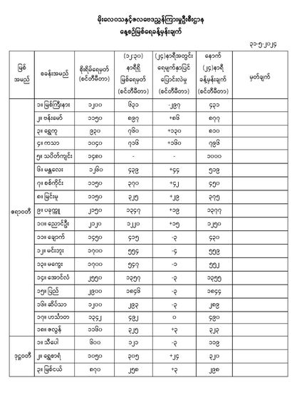 May 31,2024 |01:50 | ၃၁-၅-၂၀၂၄ မိုးလေဝသနှင့်ဇလဗေဒညွှန်ကြားမှုဦးစီးဌာနမှ ၃၁-၅-၂၀၂၄ ရက်နေ့တွင် ထုတ်ပြန်သည့် နေ့စဉ်မြစ်ရေခန့်မှန်းချက်များကို ဖော်ပြလိုက်ပါတယ်... Crd> မိုး/ဇလ
