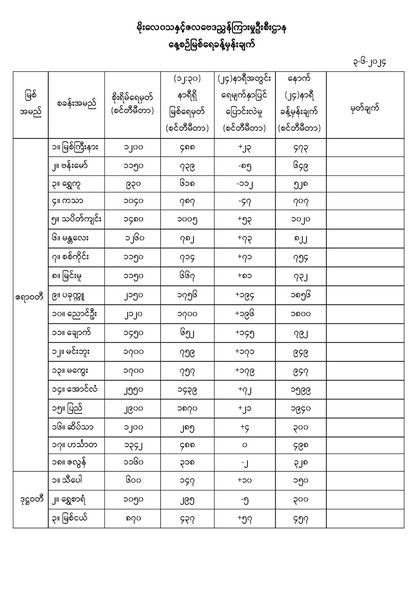 Jun 3,2024 |03:01 | ၃-၆-၂၀၂၄ မိုးလေဝသနှင့်ဇလဗေဒညွှန်ကြားမှုဦးစီးဌာနမှ ၃-၆-၂၀၂၄ ရက်နေ့တွင် ထုတ်ပြန်သည့် နေ့စဉ်မြစ်ရေခန့်မှန်းချက်များကို ဖော်ပြလိုက်ပါတယ်... Crd> မိုး/ဇလ