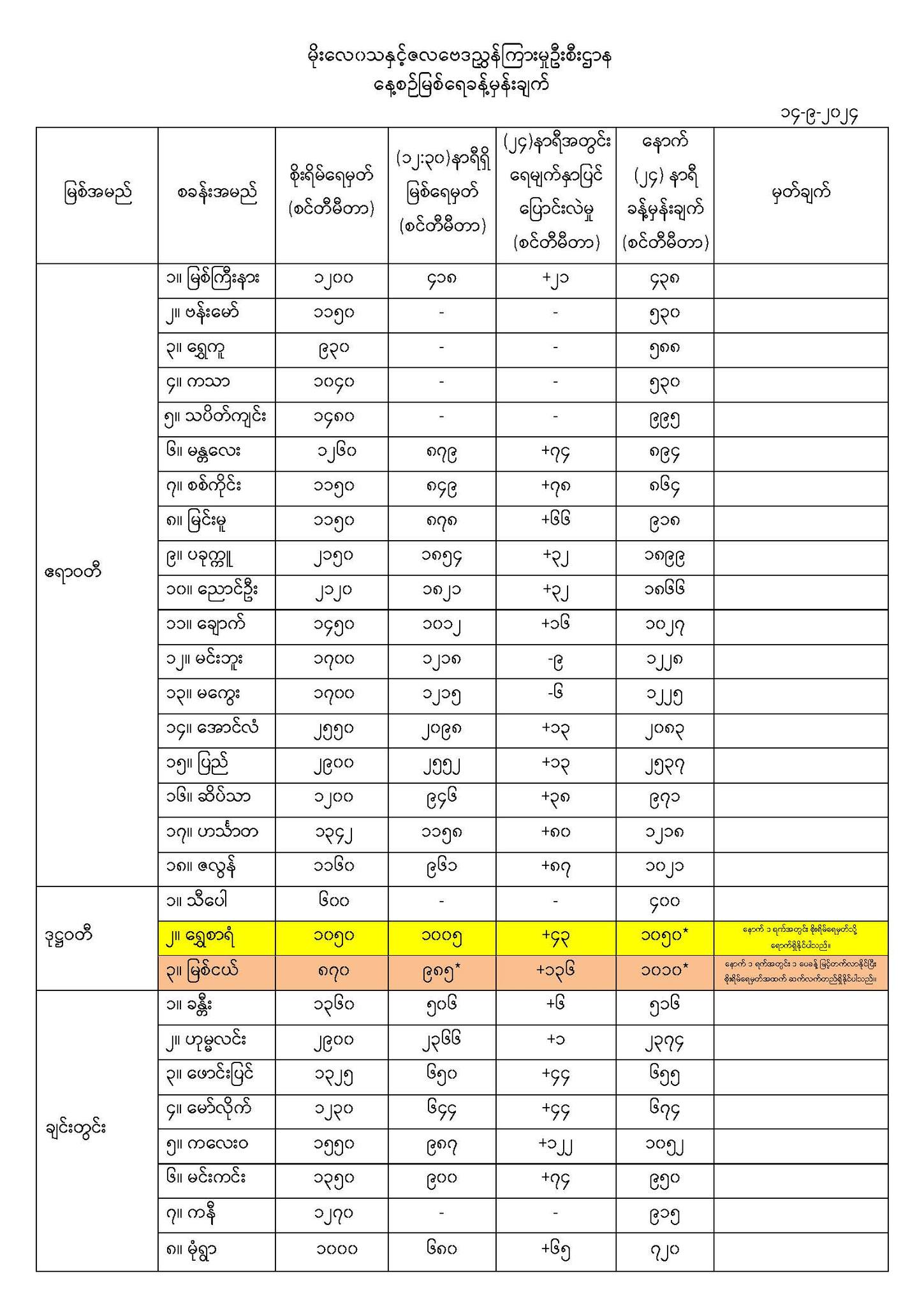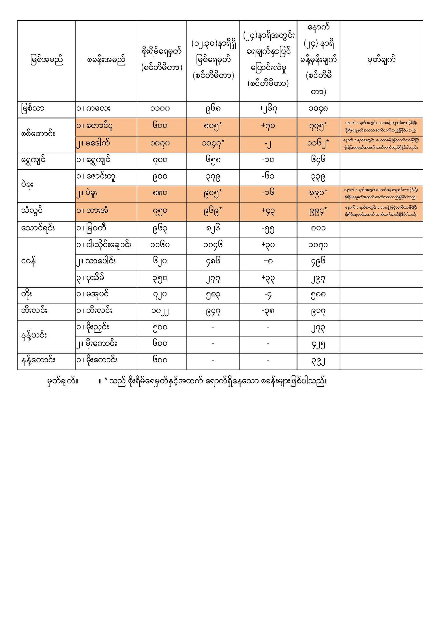 Sep 14,2024 |03:08 | ၁၄-၉-၂၀၂၄ မိုးလေဝသနှင့်ဇလဗေဒညွှန်ကြားမှုဦးစီးဌာနမှ ၁၄-၉-၂၀၂၄ ရက်နေ့တွင် ထုတ်ပြန်သည့် နေ့စဉ်မြစ်ရေခန့်မှန်းချက်များကို ဖော်ပြလိုက်ပါတယ်... Crd> မိုး/ဇလ