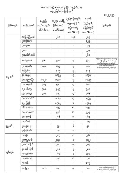 Feb 13,2025 |03:09 | ၁၃-၂-၂၀၂၅ မိုးလေဝသနှင့်ဇလဗေဒညွှန်ကြားမှုဦးစီးဌာနမှ ၁၃-၂-၂၀၂၅ ရက်နေ့တွင် ထုတ်ပြန်သည့် နေ့စဉ်မြစ်ရေခန့်မှန်းချက်များကို ဖော်ပြလိုက်ပါတယ်... Crd> မိုး/ဇလ