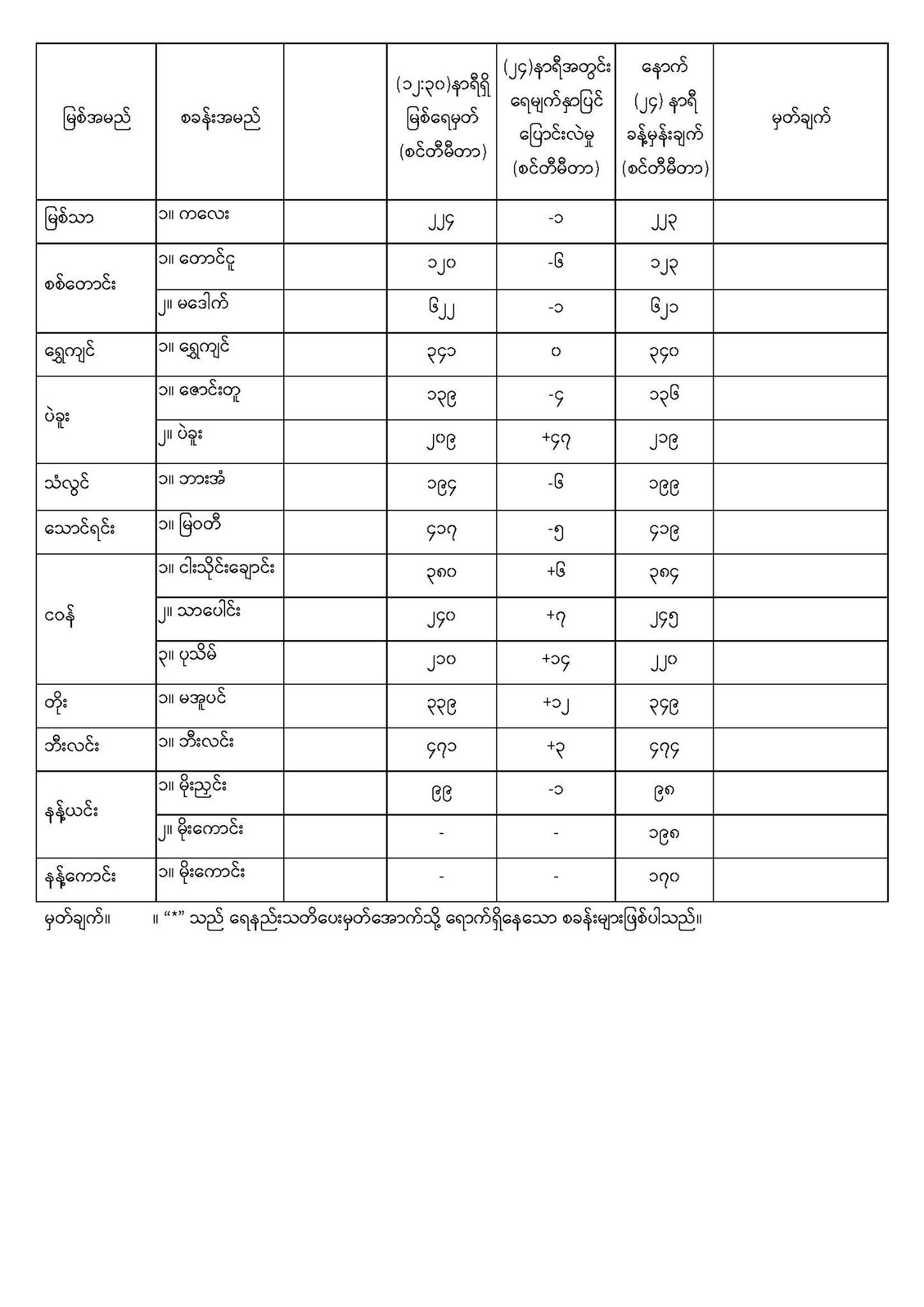 Feb 26,2025 |04:00 | ၂၆-၂-၂၀၂၅ မိုးလေဝသနှင့်ဇလဗေဒညွှန်ကြားမှုဦးစီးဌာနမှ ၂၆-၂-၂၀၂၅ ရက်နေ့တွင် ထုတ်ပြန်သည့် နေ့စဉ်မြစ်ရေခန့်မှန်းချက်များကို ဖော်ပြလိုက်ပါတယ်... Crd> မိုး/ဇလ