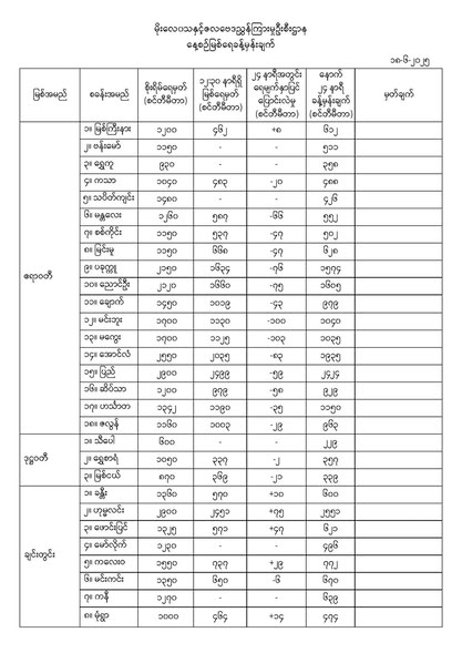 Jun 18,2025 |02:56 | ၁၈-၆-၂၀၂၅ မိုးလေဝသနှင့်ဇလဗေဒညွှန်ကြားမှုဦးစီးဌာနမှ ၁၈-၆-၂၀၂၅ ရက်နေ့တွင် ထုတ်ပြန်သည့် နေ့စဉ်မြစ်ရေခန့်မှန်းချက်များကို ဖော်ပြလိုက်ပါတယ်... Crd> မိုး/ဇလ