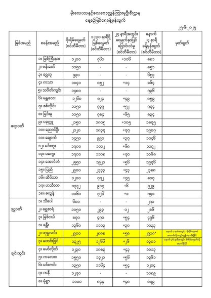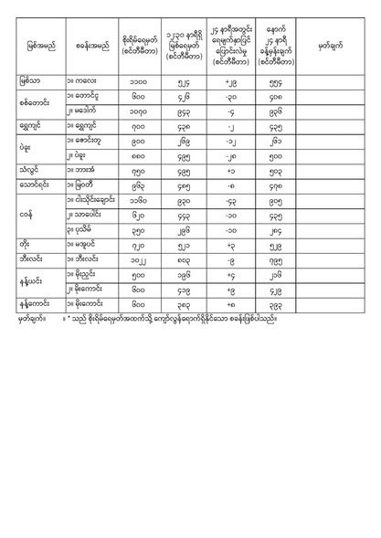 Jun 25,2025 |02:39 | ၂၅-၆-၂၀၂၅ မိုးလေဝသနှင့်ဇလဗေဒညွှန်ကြားမှုဦးစီးဌာနမှ ၂၅-၆-၂၀၂၅ ရက်နေ့တွင် ထုတ်ပြန်သည့် နေ့စဉ်မြစ်ရေခန့်မှန်းချက်များကို ဖော်ပြလိုက်ပါတယ်... Crd> မိုး/ဇလ
