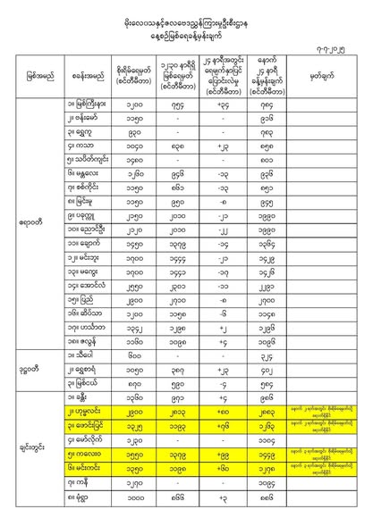 Jul 7,2025 |03:30 | ၇-၇-၂၀၂၅ မိုးလေဝသနှင့်ဇလဗေဒညွှန်ကြားမှုဦးစီးဌာနမှ ၇-၇-၂၀၂၅ ရက်နေ့တွင် ထုတ်ပြန်သည့် နေ့စဉ်မြစ်ရေခန့်မှန်းချက်များကို ဖော်ပြလိုက်ပါတယ်... Crd> မိုး/ဇလ
