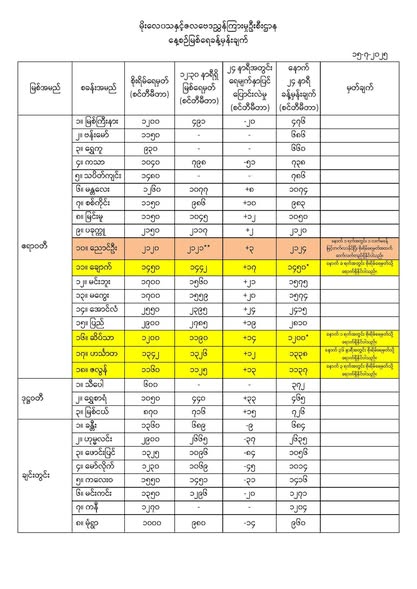 Jul 15,2025 |02:50 | ၁၅-၇-၂၀၂၅ မိုးလေဝသနှင့်ဇလဗေဒညွှန်ကြားမှုဦးစီးဌာနမှ ၁၅-၇-၂၀၂၅ ရက်နေ့တွင် ထုတ်ပြန်သည့် နေ့စဉ်မြစ်ရေခန့်မှန်းချက်များကို ဖော်ပြလိုက်ပါတယ်.... Crd> မိုး/ဇလ