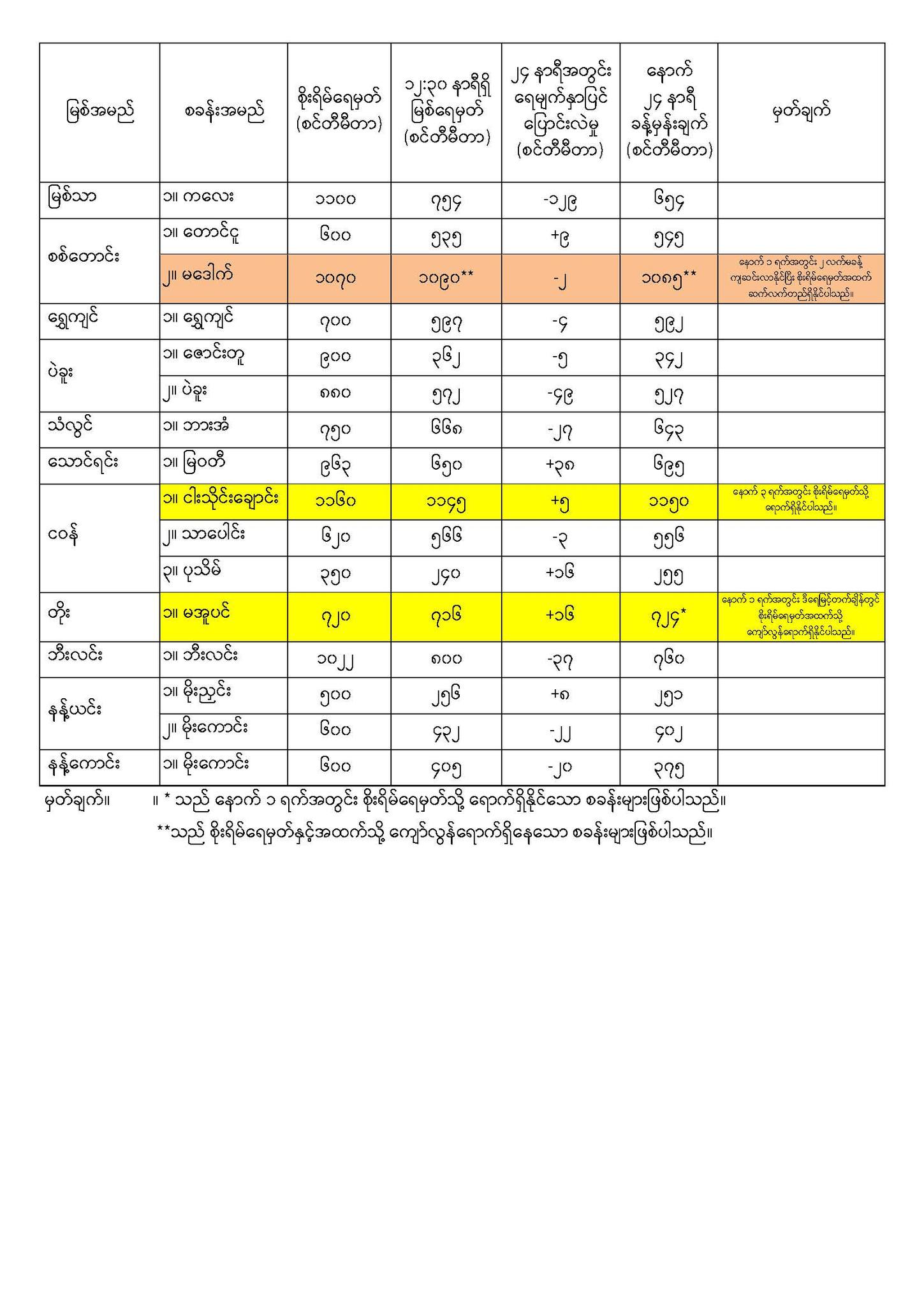 Jul 17,2025 |02:37 | ၁၇-၇-၂၀၂၅ မိုးလေဝသနှင့်ဇလဗေဒညွှန်ကြားမှုဦးစီးဌာနမှ ၁၇-၇-၂၀၂၅ ရက်နေ့တွင် ထုတ်ပြန်သည့် နေ့စဉ်မြစ်ရေခန့်မှန်းချက်များကို ဖော်ပြလိုက်ပါတယ်... Crd> မိုး/ဇလ