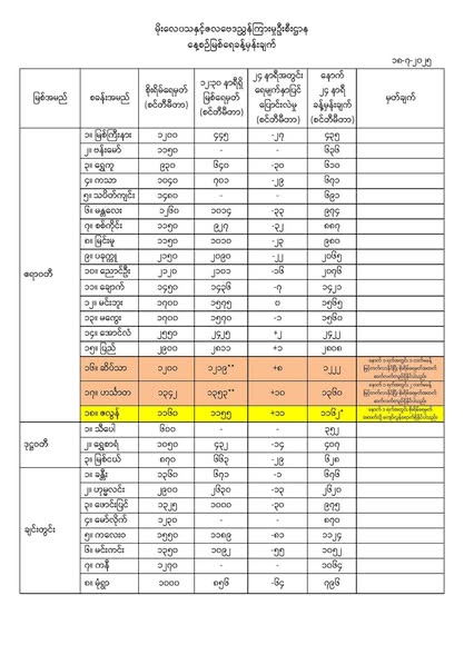 Jul 18,2025 |02:38 | ၁၈-၇-၂၀၂၅ မိုးလေဝသနှင့်ဇလဗေဒညွှန်ကြားမှုဦးစီးဌာနမှ ၁၈-၇-၂၀၂၅ ရက်နေ့တွင် ထုတ်ပြန်သည့် နေ့စဉ်မြစ်ရေခန့်မှန်းချက်များကို ဖော်ပြလိုက်ပါတယ်... Crd> မိုး/ဇလ