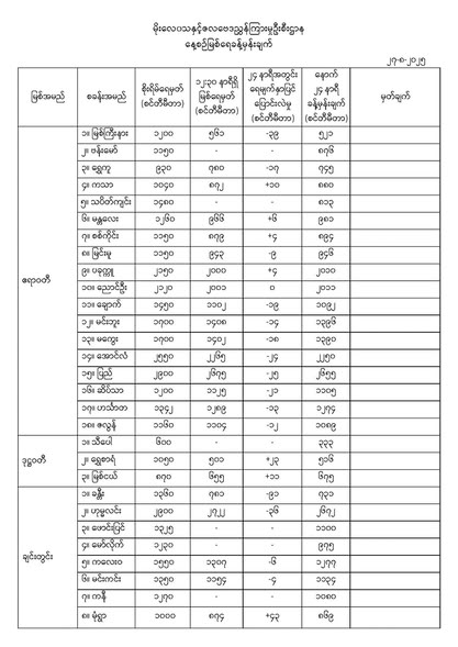 Aug 26,2025 |02:49 | ၂၆-၈-၂၀၂၅ မိုးလေဝသနှင့်ဇလဗေဒညွှန်ကြားမှုဦးစီးဌာနမှ ၂၆-၈-၂၀၂၅ ရက်နေ့တွင် ထုတ်ပြန်သည့် နေ့စဉ်မြစ်ရေခန့်မှန်းချက်များကို ဖော်ပြလိုက်ပါတယ်... Crd> မိုး/ဇလ